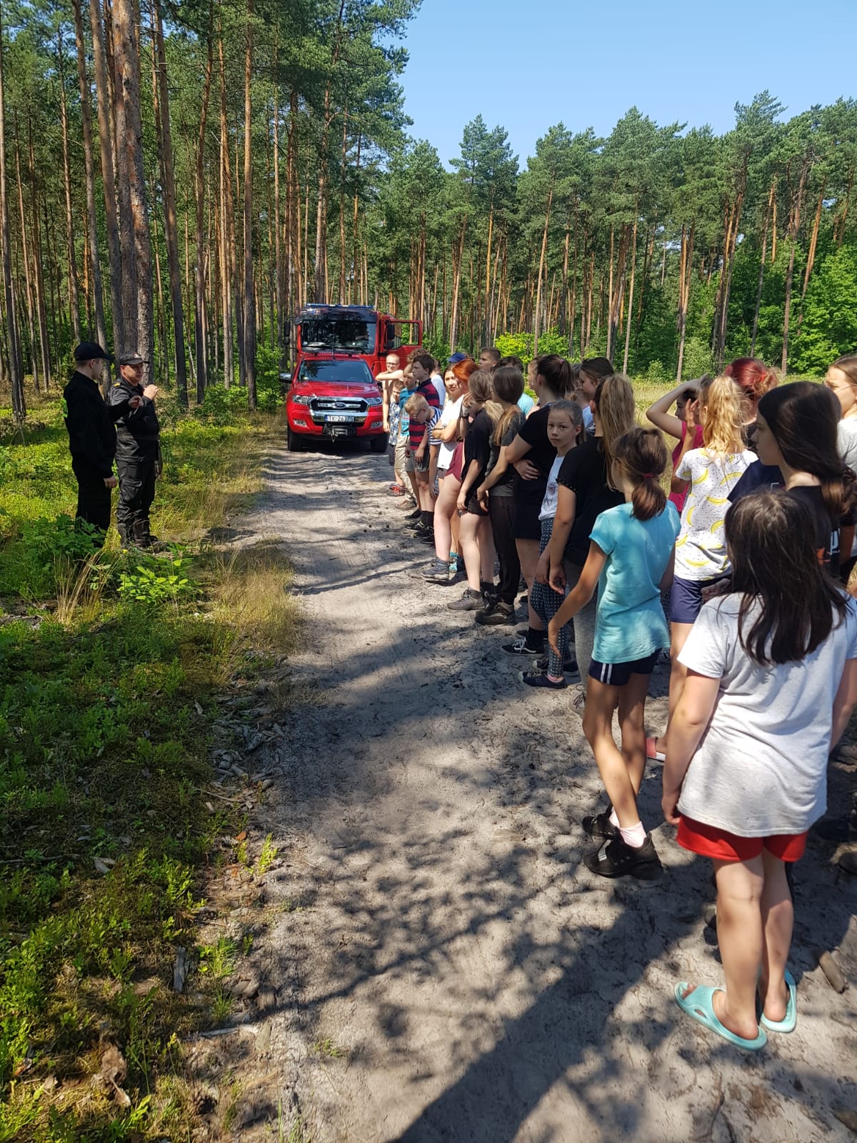 Strażacy zapoznali kadrę obozu, ze sposobami postępowania podczas wystąpienia zagrożeń na terenie leśnym. Szczególną uwagę zwrócono na zagrożenia pożarowe oraz zagrożenia związane z gwałtownymi wyładowaniami atmosferycznymi, obfitymi opadami deszczu i gradu oraz silnymi wiatrami. Sprawdzono również oznakowanie miejsc ważnych z punktu widzenia ochrony przeciwpożarowej, dróg dojazdowych oraz ewakuacyjnych, łączność z kierownictwem obozu za pośrednictwem telefonii komórkowej. Harcerze zostali wyposażeni przez strażaków w radiotelefon przenośny pozwalający nawiązać łączność radiową ze stanowiskiem kierowania i zastępami PSP natomiast strażacy ze zmian służbowych zapoznali się z warunkami i możliwością dojazdu na miejsce obozowiska.
