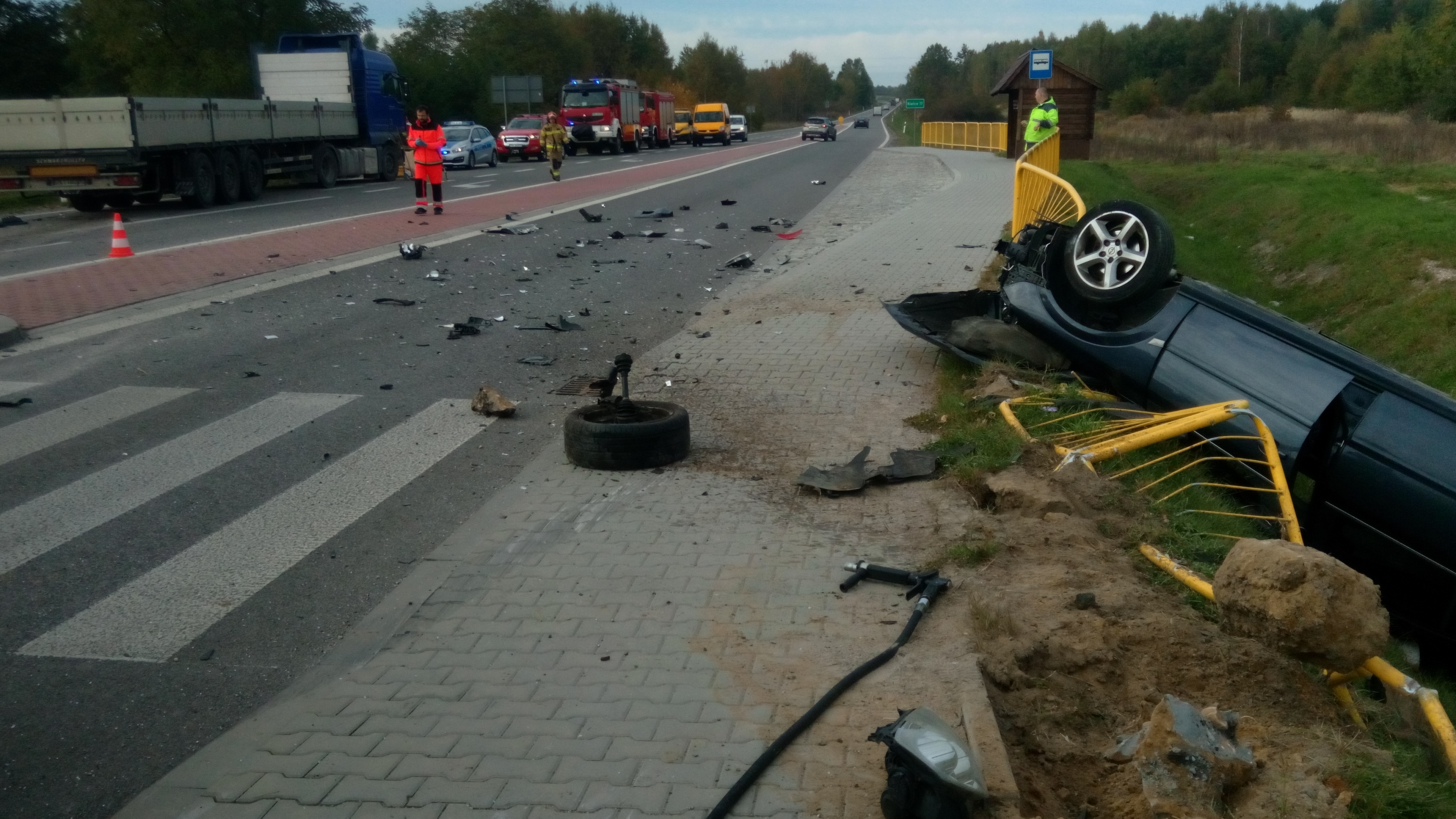 W chwili przybycia na miejscie Jednostek Ochrony Przeciwpożarowej, samochód ciężarowy znajdował się na pasie drogi a samochód osobowy w rowie melioracyjnym. Ruch odbywał się wahadłowo. Kwalifikowana pierwsza pomoc została udzielona kierującemu samochodem osobowym przez ratownika medycznego z karetki transportowej, która przejeżdżała obok miejsca zdarzenia. Po przybyciu kolejnego Zastępu Ratownictwa Medycznego mężczyzna z Opla został przebadany, a następnie zabrany do szpitala. Kierowca samochodu ciężarowego nie wymagał udzielenia pomocy medycznej.