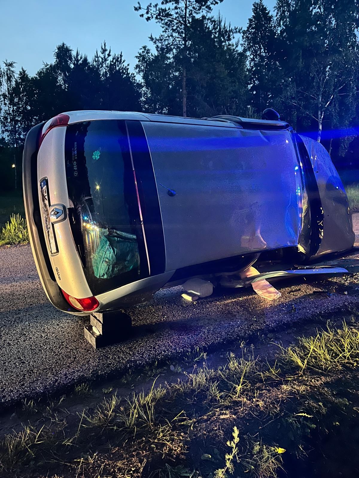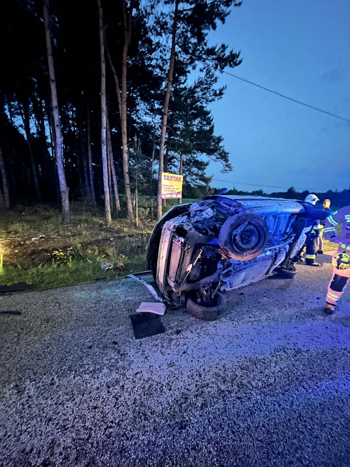 W sobotni wieczór, 8 czerwca 2025 roku około godziny 20:40, na drodze powiatowej w miejscowości Danków (gmina Daleszyce), samochód osobowy marki Renault Clio dachował i znalazł się w pozycji na dachu pośrodku jezdni.