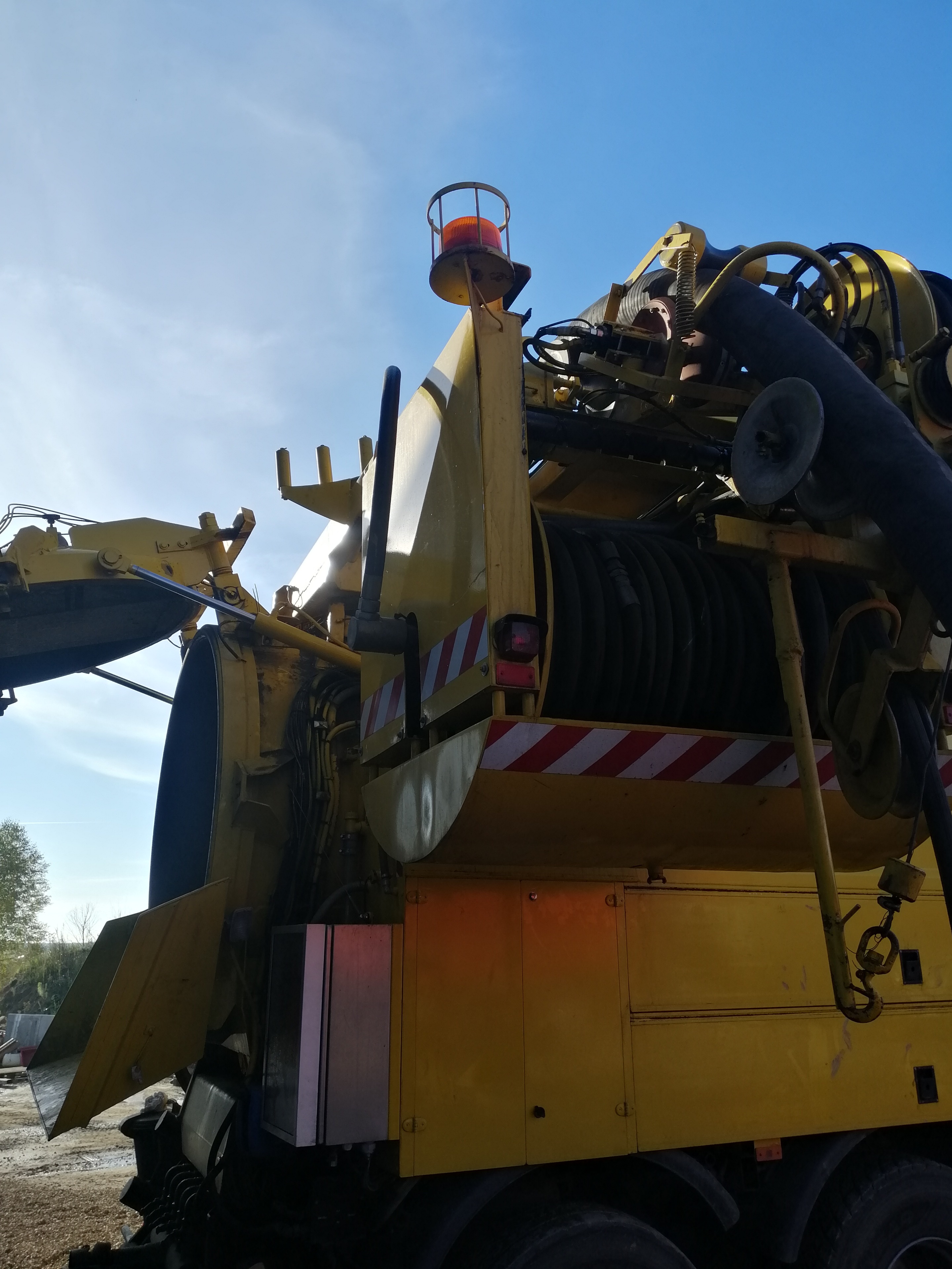 Strażacy, którzy przybyli na miejsce zdarzenia znaleźli młodego mężczyznę znajdującego się we wnętrzu zbiornika-beczki zamontowanego na samochodzie do czyszczenia kanalizacji. Poszkodowany, podczas prowadzenia prac konserwatorskich w pustym zbiorniku został przyciśnięty przez 100-u kilogramowy filtr. Na miejscu był już Zespół Ratownictwa Medycznego oraz Lotnicze Pogotowie Ratunkowe. Działania strażaków skupiły się zabezpieczeniu miejsca zdarzenia oraz uwolnieniu i wydobyciu poszkodowanego na noszach typu deska z beczki. Podczas akcji ratownicy byli zabezpieczeni w aparaty ochrony układu oddechowego. Strażacy sprawdzili urządzeniem pomiarowym atmosferę wewnątrz zbiornika nie znajdując żadnych gazów niebezpiecznych. Poszkodowany mężczyzna po przebadaniu został zabrany śmigłowcem HEMS do szpitala.