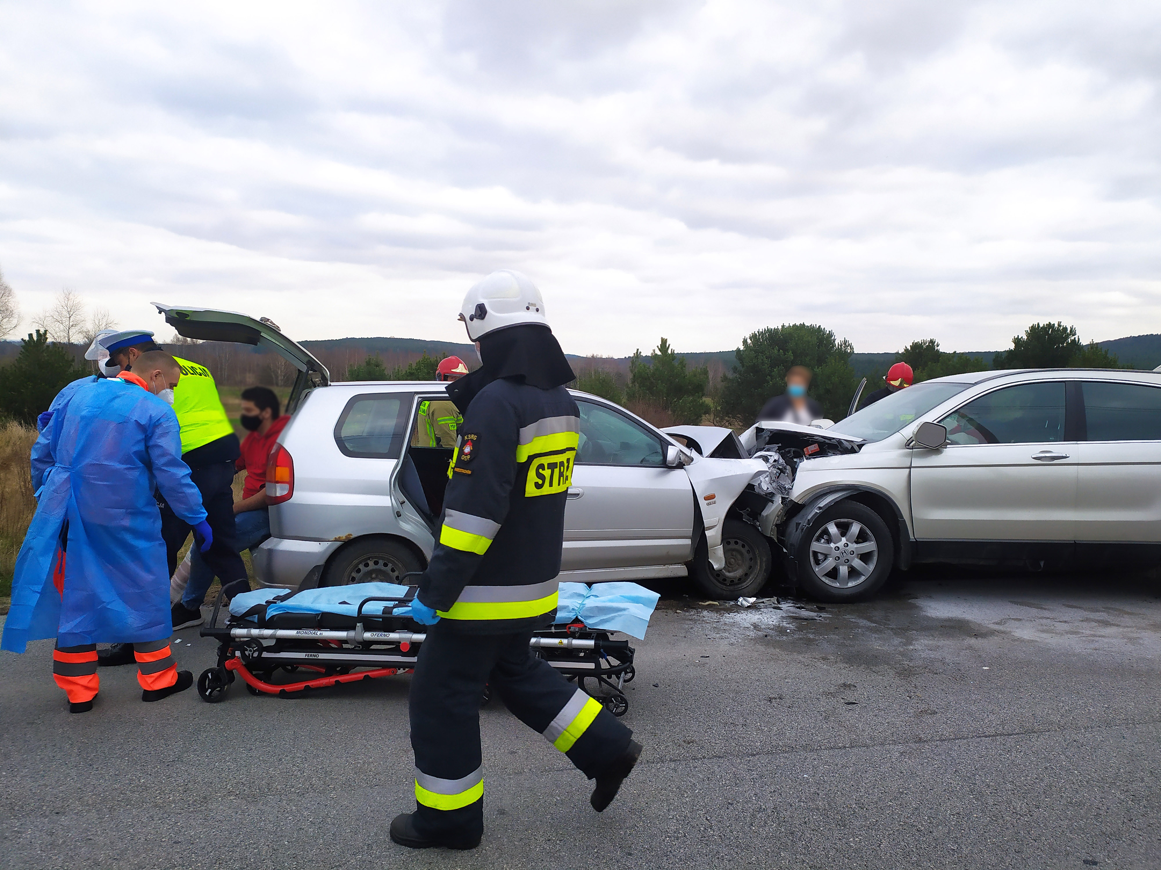 Do zdarzenia zadysponowane zostały dwa zastępy z JRG Nr 1 w Kielcach oraz zastęp z OSP Niestachów. Po dojeździe na miejsce zdarzenia stwierdzono, że doszło do czołowego zderzenia dwóch samochodów osobowych Mitsubishi oraz Hondy. Pojazdami podróżowało łącznie cztery osoby, które w chwili przybycia straży pożarnej znajdowały się poza samochodami.