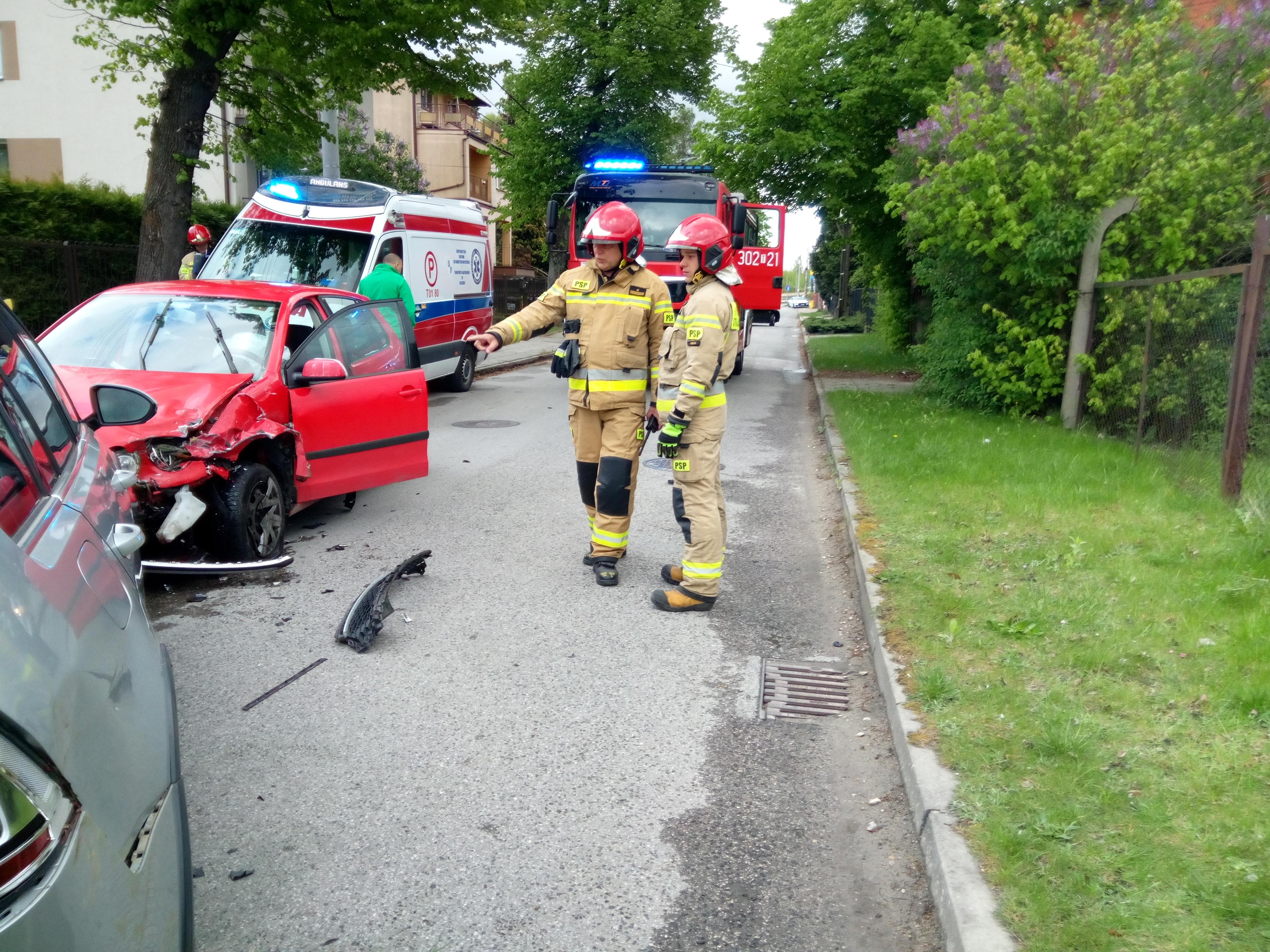 Zderzyły się dwa samochody osobowe marki: Volkswagen Golf i Volkswagen Polo, którymi podróżowali tylko kierowcy - obaj samodzielnie opuścili auta. Działania zastępu strażaków obejmowały zabezpieczenie terenu, odłączenie zasilania z akumulatorów w pojazdach oraz usunięcie wycieków z jezdni. Po przebadaniu przez personel Zespołu Ratownictwa Medycznego jeden z mężczyzn został przewieziony do szpitala.