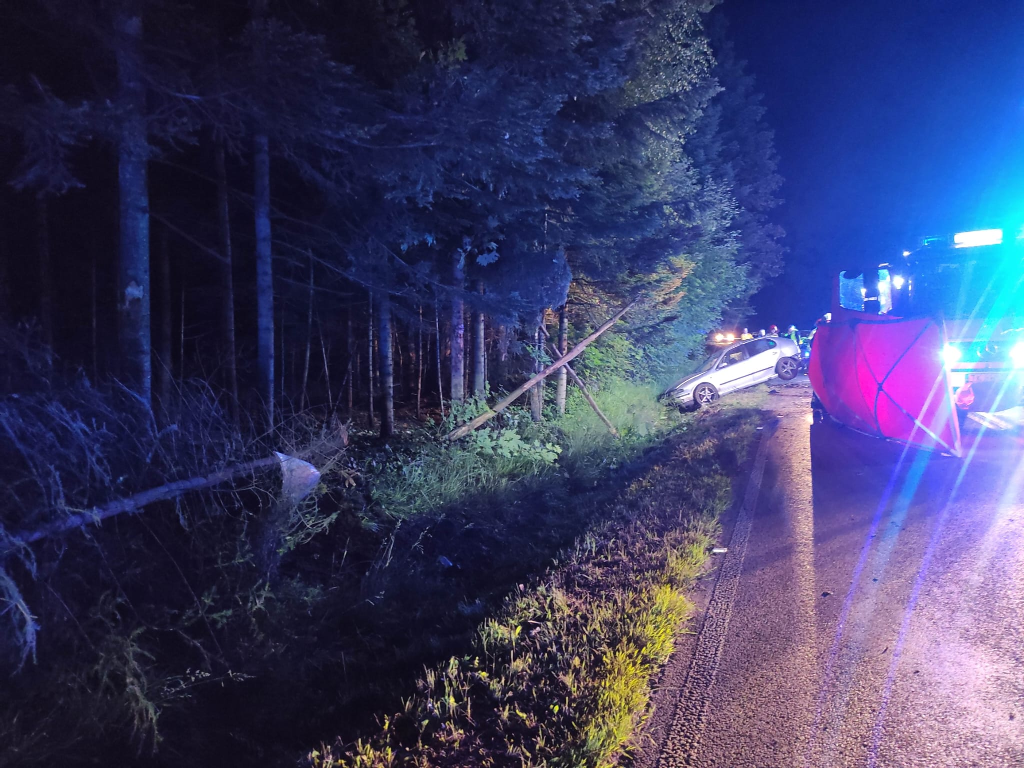 19 czerwca 2023 roku tuż przed godziną 23:00 Stanowisko Kierowania Komendanta Miejskiego Państwowej Straży Pożarnej w Kielcach otrzymało zgłoszenie o wypadku samochodowym w miejscowości Podgórze gmina Bodzentyn.