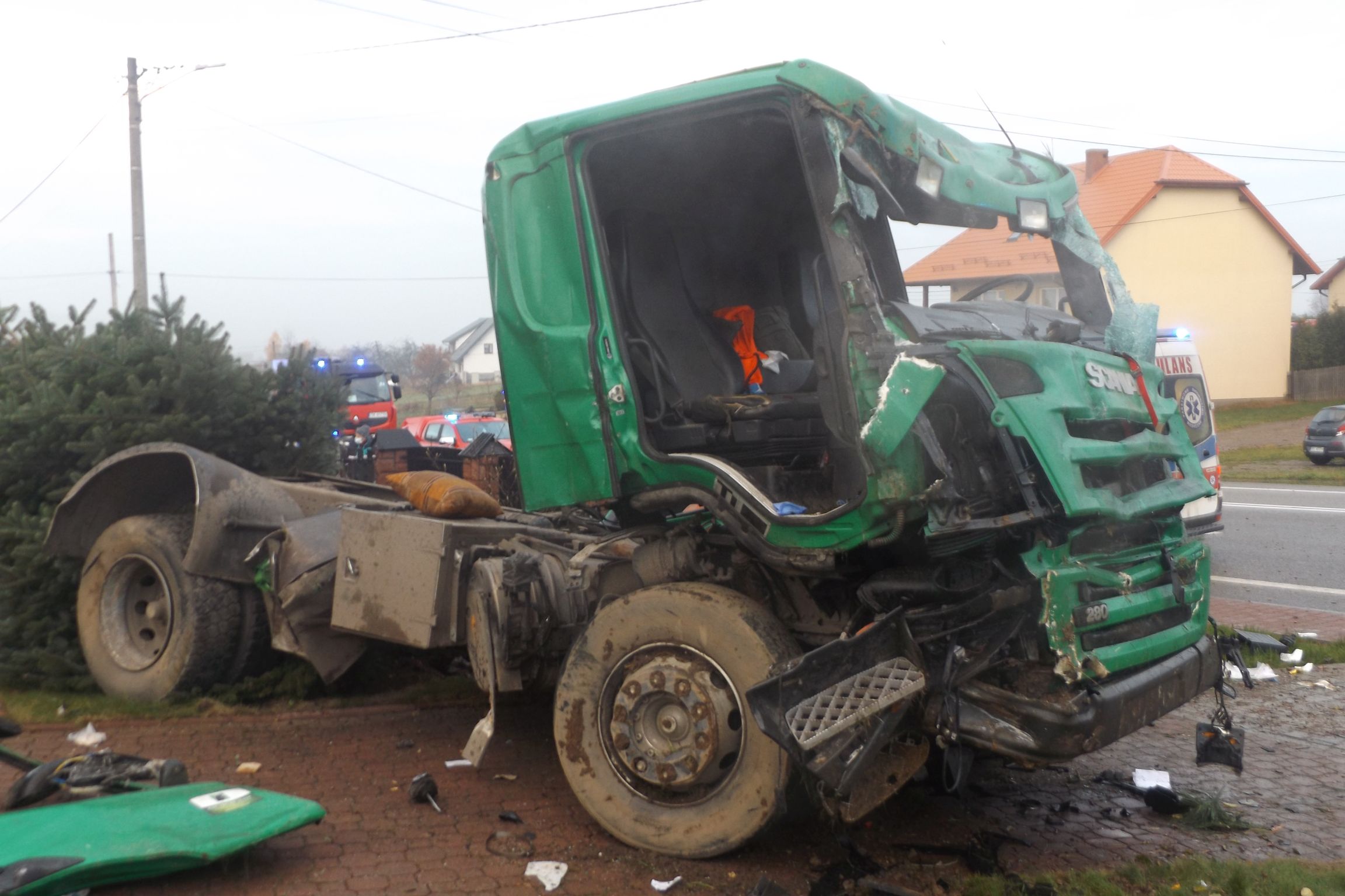 Wypadek samochodu ciężarowego w miejscowości huta koszary gm. Bieliny
