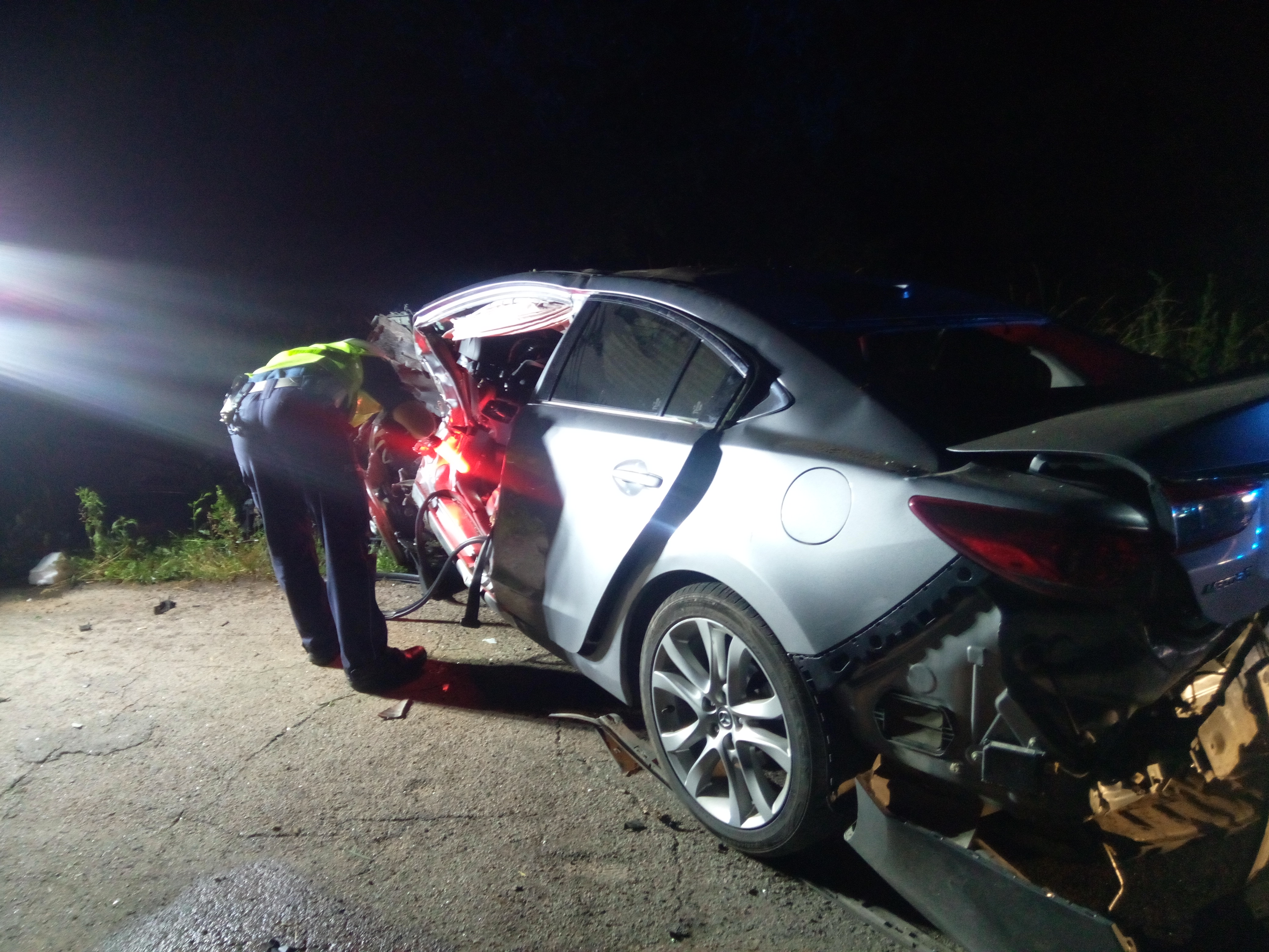 Po przybyciu na miejsce zdarzenia zastępu z OSP Ćmińsk stwierdzono, że samochód osobowy marki Mazda 6, którym podróżował tylko kierowca wypadł z jezdni i zjechał do przydrożnego rowu.