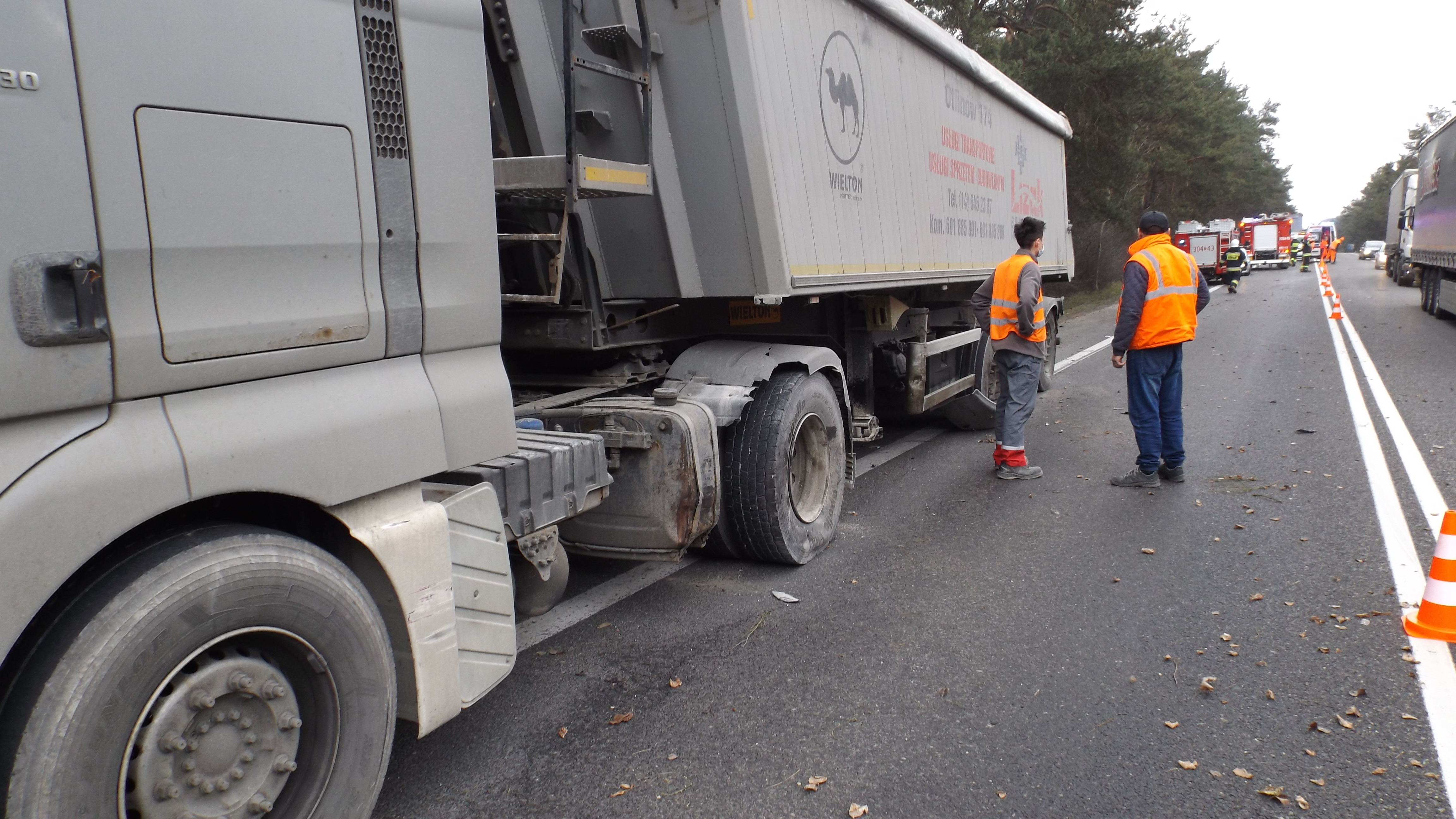 Do zdarzenia zadysponowano dwa zastępy z JRG nr 4 w Chmielniku oraz dwa zastępy z najbliższych jednostek OSP. Na miejscu okazało się, że doszło do zderzenia samochodu ciężarowego z samochodem osobowym. Samochód osobowy znajdował się w rowie, a ciężarowy na drodze blokując jeden pas ruchu. Kierowca ciężarówki opuścił pojazd o własnych siłach i nie wymagał pomocy medycznej, natomiast kierowca samochodu osobowego-mężczyzna, znajdował się w pojeździe.