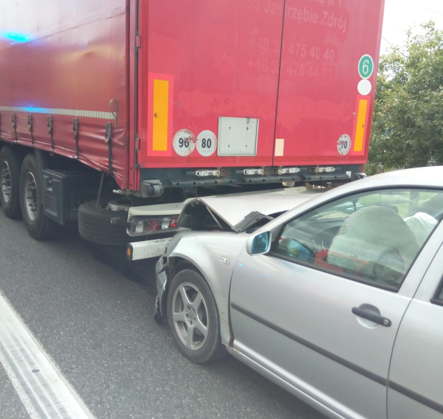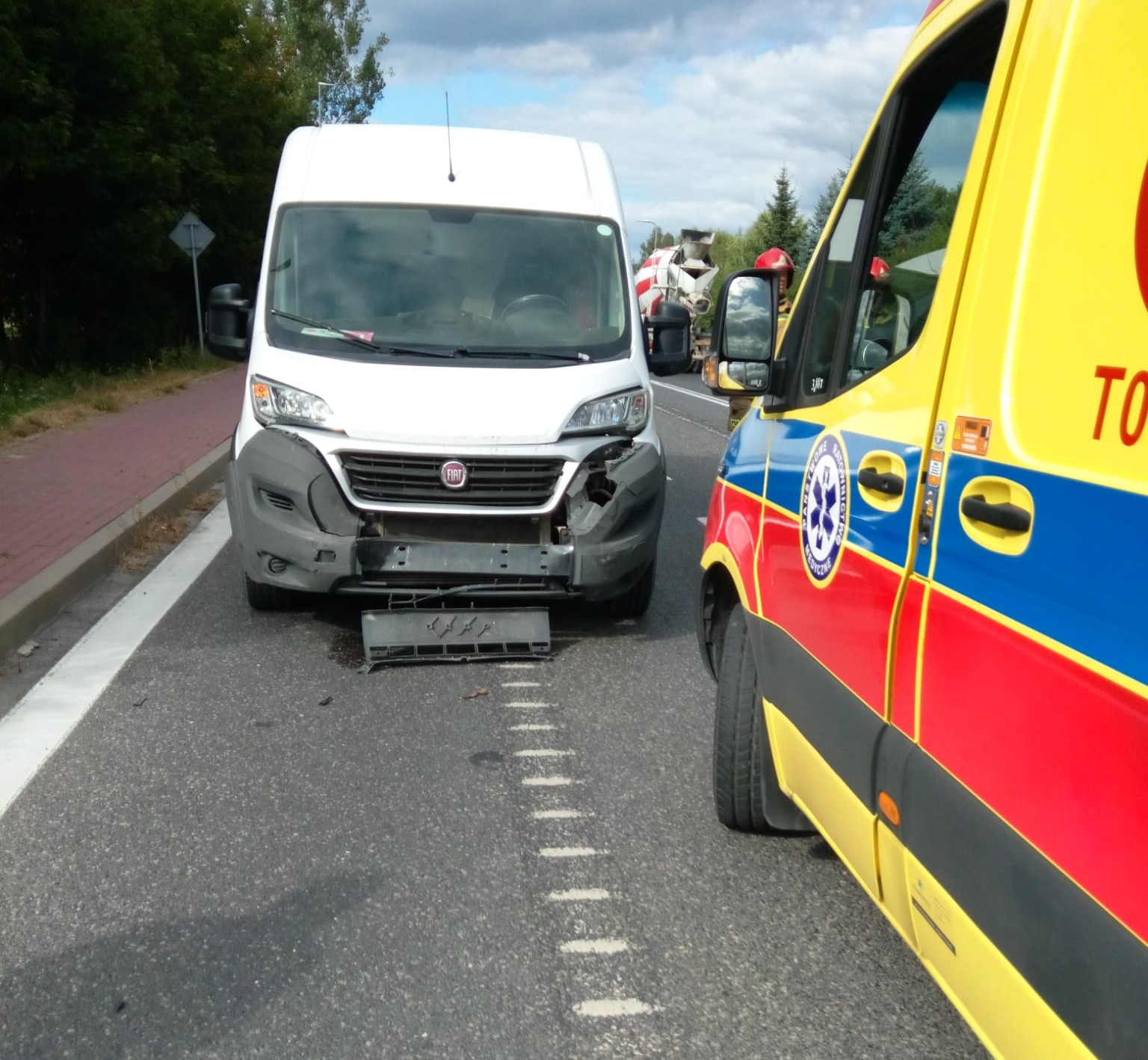 We wtorek, 19 sierpnia 2025 roku, około godziny 16:00, na ulicy Świętokrzyskiej w Ćmińsku (DK 74) doszło do groźnego zderzenia trzech pojazdów: samochodu osobowego Volkswagen Bora, busa Fiat Ducato oraz ciągnika siodłowego Scania z naczepą.