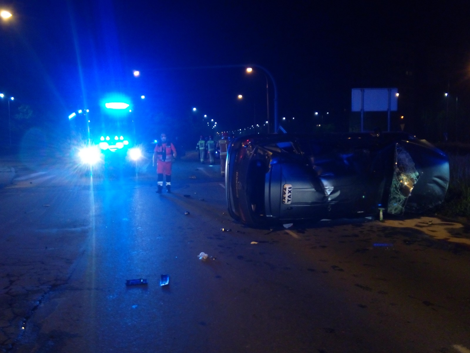 Po przybyciu na miejsce zdarzenia zastępu straży pożarnej stwierdzono, ze doszło do zderzenia dwóch samochodów osobowych marki Mazda i Volkswagen Passat. Pojazdami podróżowali tylko kierujący. Wszystkie osoby przed przybyciem strażaków wydostały się z pojazdów o własnych siłach. Kierujący Mazdą po udzielonej pomocy medycznej przez ZRM, został przetransportowany do szpitala. Natomiast kierujący Volkswagenem nie posiadał żadnych obrażeń. W wyniku zderzenia uszkodzeniu uległ słup sygnalizacji świetlnej oraz dwa znaki drogowe. Samochód Mazda znajdował się na lewym boku, natomiast samochód Passat znajdował się na skrzyżowaniu. Z uszkodzonych pojazdów wyciekł olej napędowy oraz płyny eksploatacyjne. Działania straży pożarnej w pierwszej fazie działań polegały na zabezpieczeniu miejsca zdarzenia, odłączeniu klem w akumulatorach w uszkodzonych pojazdach i zakręcono zawór butli LPG w samochodzie Mazda. Po zakończeniu czynności dochodzeniowo-śledczych prowadzonych przez Policję samochód Mazda został postawiony na koła i sholowany na zatoczkę autobusową przy użyciu wyciągarki samochodowej. Plamę oleju napędowego i płynów eksploatacyjnych poddano sorpcji, po czym uprzątnięto zużyty sorbent w celu przekazania do utylizacji. Obecni na miejscu zdarzenia pracownicy Miejskiego Zarządu Dróg w Kielcach zabezpieczyli uszkodzoną infrastrukturę drogową.