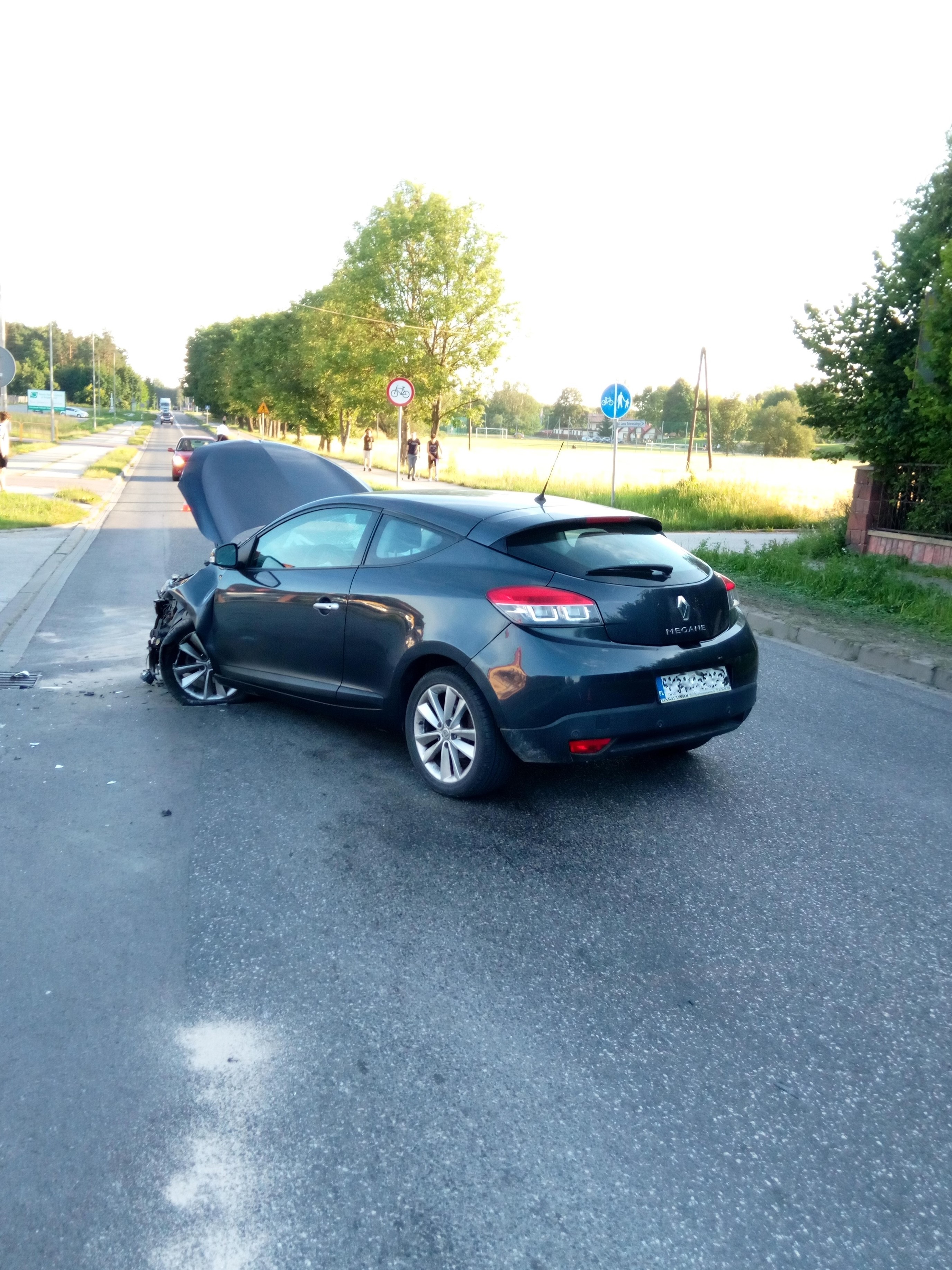 Na drodze numer 728 zderzyły się czołowo Yamaha R1 i samochód osobowy Renault którymi podróżowali jedynie kierowcy. Zespół Ratownictwa Medycznego zabrał do szpitala motocyklistę zaś kierowca auta nie wymagał pomocy. Strażacy zabezpieczyli teren zdarzenia, odłączyli zasilanie z akumulatorów w obu pojazdach i usunęli plamę substancji ropopochodnej z jezdni. Do czasu zakończenia policyjnych czynności wyjaśniających okoliczności zdarzenia druhowie z Ochotniczej Straży Pożarnej z Łopuszna zabezpieczali i oświetlali teren działań.