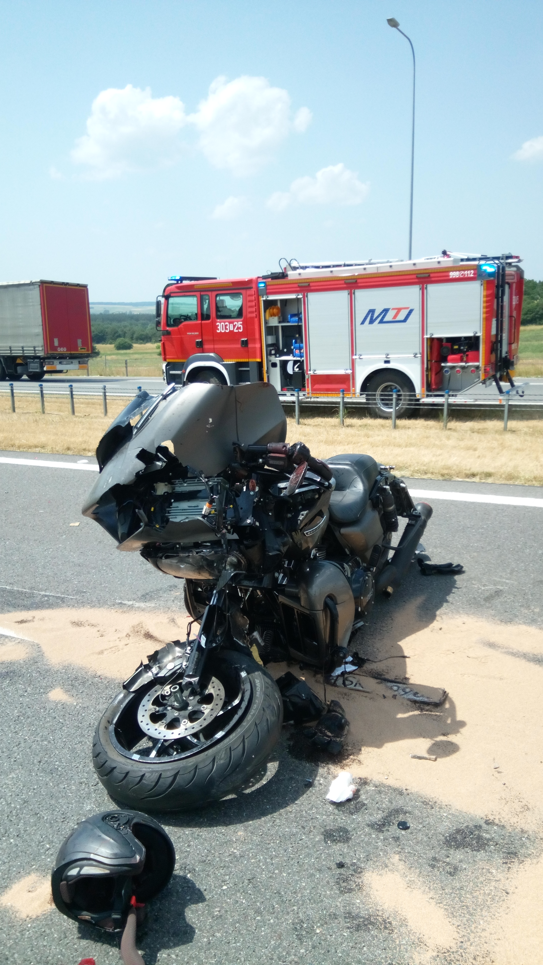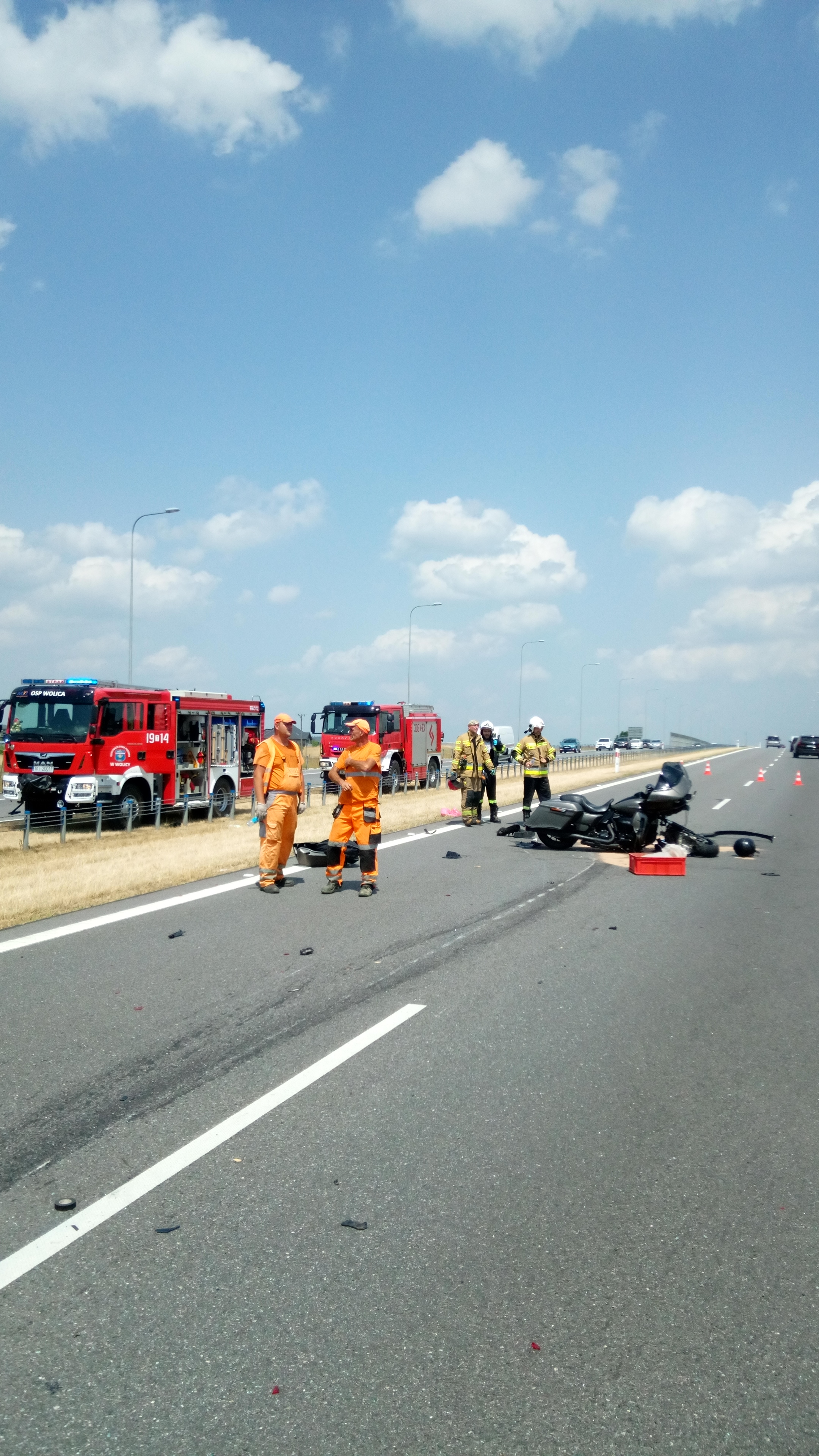 Wypadek z udziałem motocykla i samochodu osobowego na trasie S7