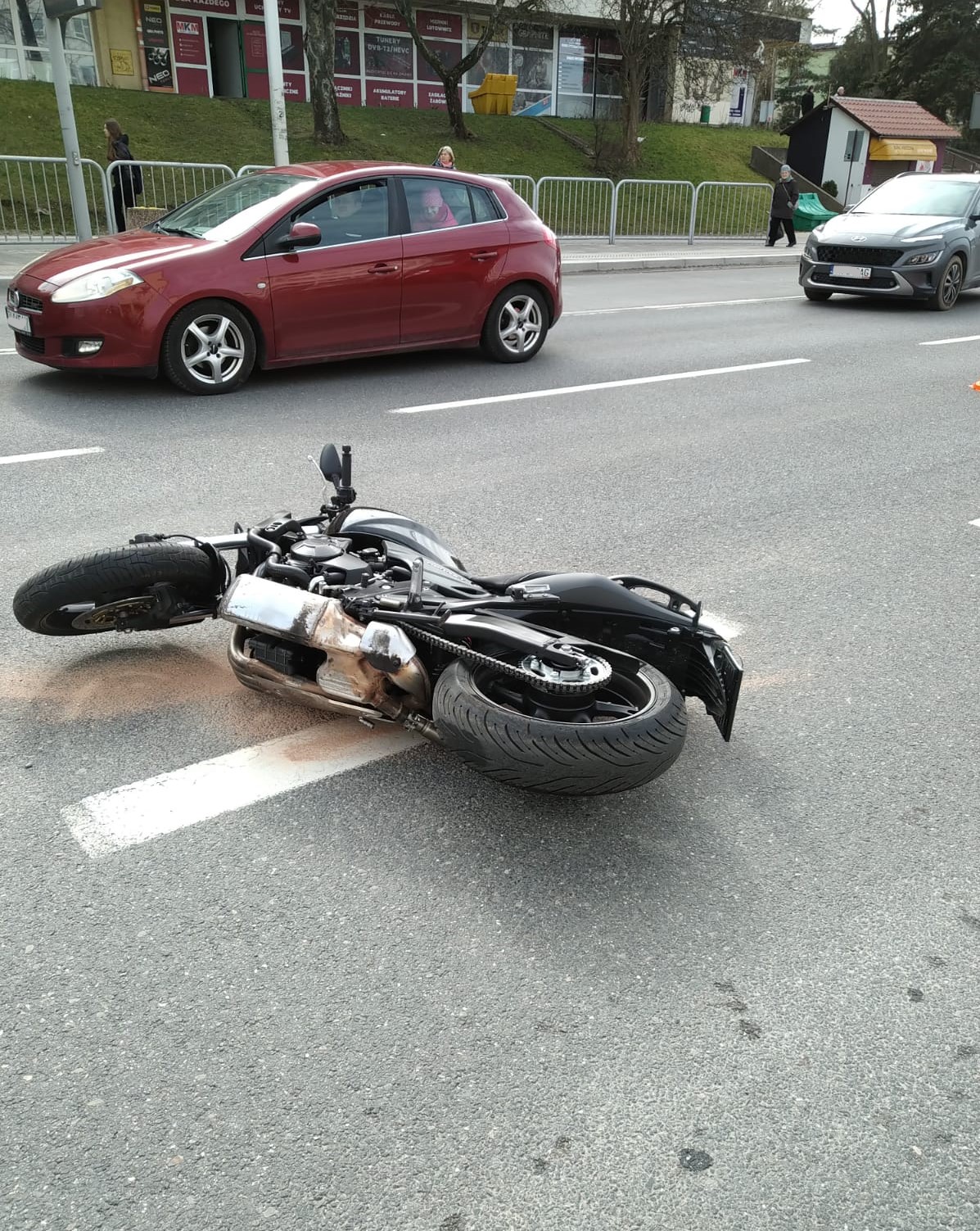 Wypadek z udziałem motocykla na ulicy Sandomierskiej w Kielcach
