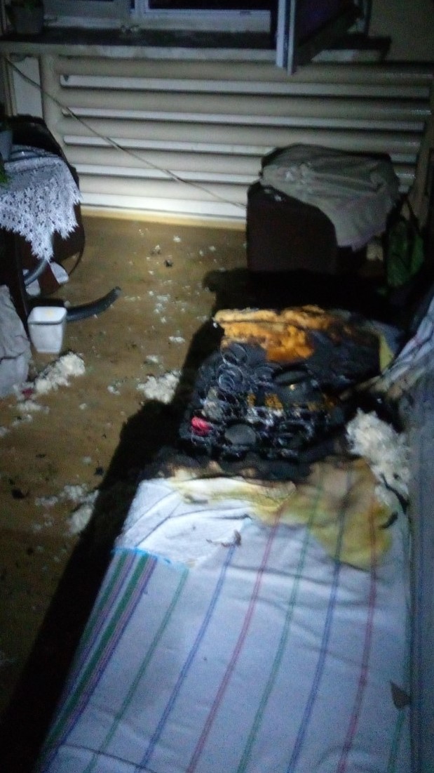 Po przybyciu na miejsce zdarzenia pierwszych zastępów straży pożarnej okazało się, że mieszkanie na parterze jest silne zadymione. Po zabezpieczeniu miejsca zdarzenia strażacy wyposażeni w sprzęt ochrony dróg oddechowych weszli do środka w celu zlokalizowania osoby poszkodowanej. W trakcie przeszukania znaleziono w pokoju mężczyznę z oznakami poparzenia górnej części ciała i dróg oddechowych. Poszkodowany został natychmiast ewakuowany ze strefy zadymienia na zewnątrz, gdzie strażacy udzielili mu kwalifikowanej pierwszej pomocy. Następnie został przekazany zespołowi ratownictwa medycznego, który natychmiast zabrał go do szpitala.