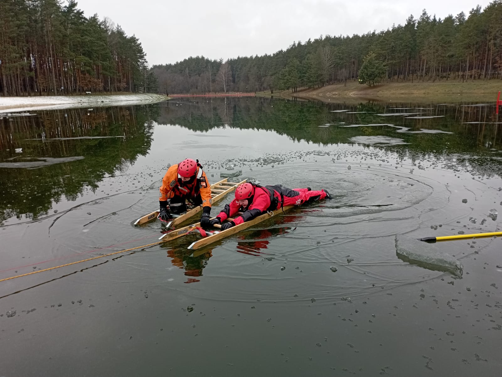13 lutego 2023 roku na zalewie Andrzejówka w Chmielniku strażacy z Jednostki Ratowniczo-Gaśniczej Numer 4 Państwowej Straży Pożarnej przeprowadzili ćwiczenia na zamarzniętym zbiorniku wodnym.