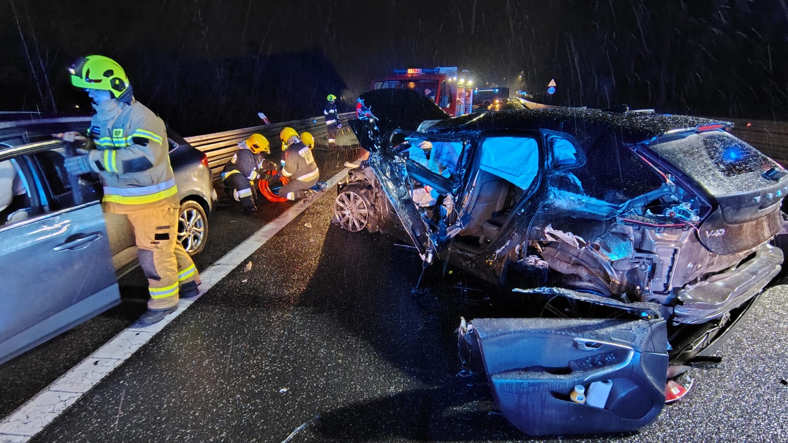 Do wypadku doszło w Ćmińsku gmina Miedziana Góra na wysokości Toru Kielce, 14 marca 2025 roku około godziny 19:10. Autami jechało łącznie 6 osób: 4 osoby w Renault, a w pozostałych jedynie kierowcy. Jedynie kierowca samochodu Volvo pozostawał uwięziony w pojeździe, a pozostali sami wysiedli z aut. 4 zastępy straży pożarnej przyjechały na ratunek i ratownicy rozpoczęli działania: oznakowali miejsce, oświetlili teren oraz narzędziami hydraulicznymi wykonali dostęp do poszkodowanego. Strażacy wraz z personelem medycznym wydobyli mężczyznę, który został zabrany do szpitala. 3 kobiety z Renault również zostały przebadane i pojechały do szpitala. Strażacy odłączyli zasilanie z akumulatorów w autach a na zakończenie usunęli wycieki z jezdni. W czasie działań ruch na drodze krajowej był całkowicie zablokowany i został przywrócony dopiero po około 3 godzinach.