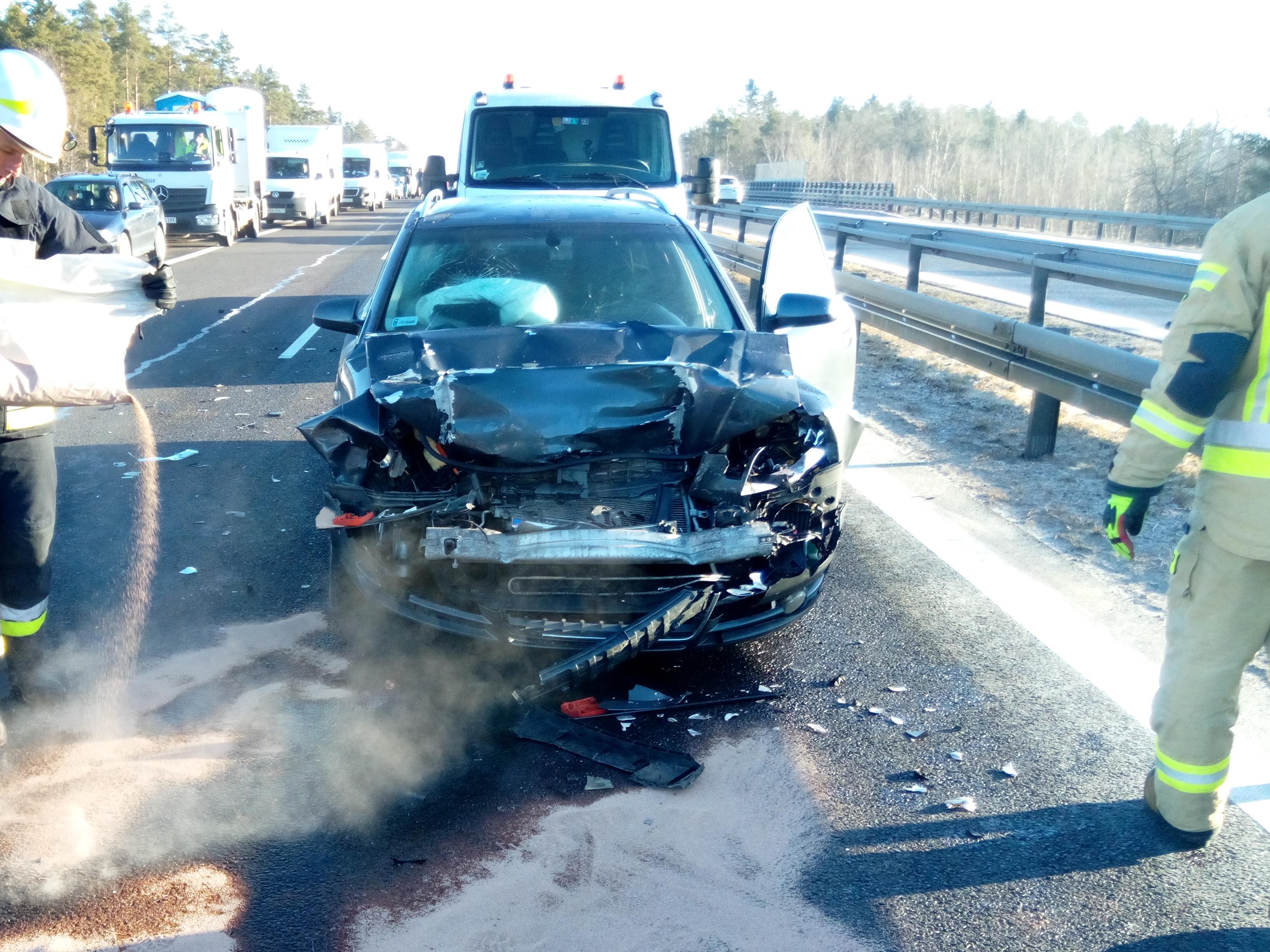 Na drodze ekspresowej zderzyły się trzy samochody osobowe: Audi A6, Renault Clio i Audi A3 oraz samochód ciężarowy marki Scania. W zdarzeniu brało udział łącznie 7 osób, które samodzielnie opuściły auta i nie wymagały pomocy medycznej. Uszkodzone samochody stały na jezdni, blokując dwa pasy ruchu w kierunku Krakowa przez co wystąpiły znaczne utrudnienia w komunikacji. Strażacy zabezpieczyli miejsce zdarzenia i odłączyli zasilanie z akumulatorów w uszkodzonych samochodach. Usunęli także powstałe na jezdni plamy substancji ropopochodnej przy użyciu sorbentu.