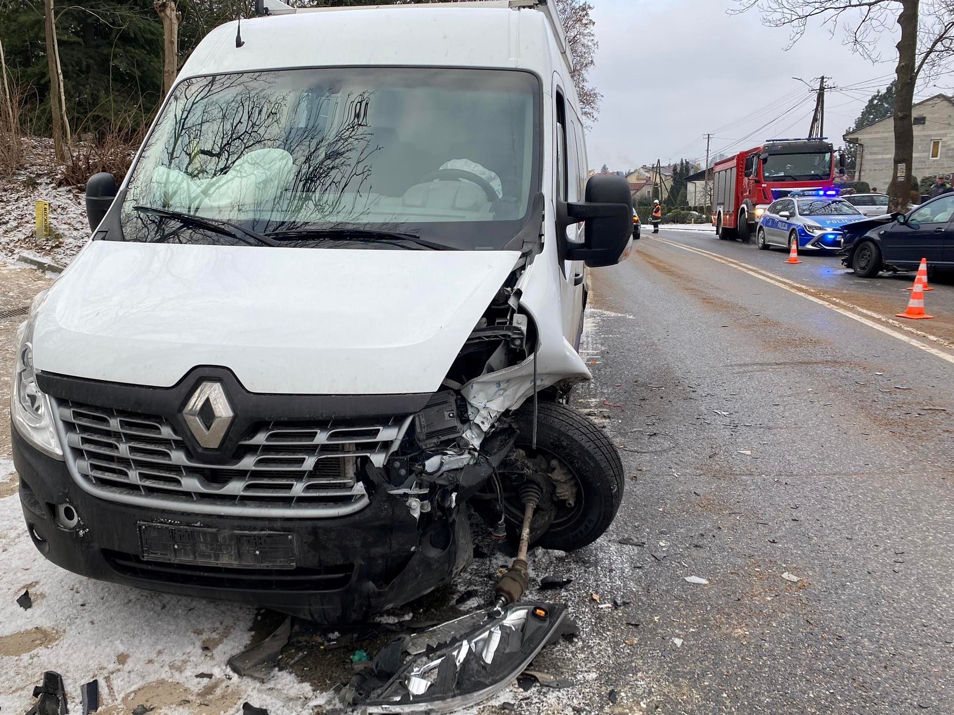 Na drodze wojewódzkiej numer 753 w Bielinach doszło do zderzenia dwóch samochodów osobowych Renault Master i Volkswagen Golf. W zdarzeniu brało udział 5 osób i wszystkie samodzielnie opuściły auta przed przybyciem straży pożarnej. W wyniku zajścia jeden pas drogi był nieprzejezdny. Działania zastępów straży pożarnej polegały na zabezpieczeniu miejsca zdarzenia oraz wdrożeniu odpowiednich procedur z zakresu kwalifikowanej pierwszej pomocy w stosunku do kierującej Volkswagenem. Zespół Ratownictwa Medycznego, który przejął opiekę nad poszkodowaną zabrał ją do szpitala. Pozostałe osoby nie potrzebowały pomocy medycznej. Strażacy zabezpieczyli uszkodzone auta odłączając zasilanie z akumulatorów i zakręcając zawór butli LPG w samochodzie Volkswagen, a następnie usunęli plamę płynów eksploatacyjnych z jezdni. Na tym działania zakończono.