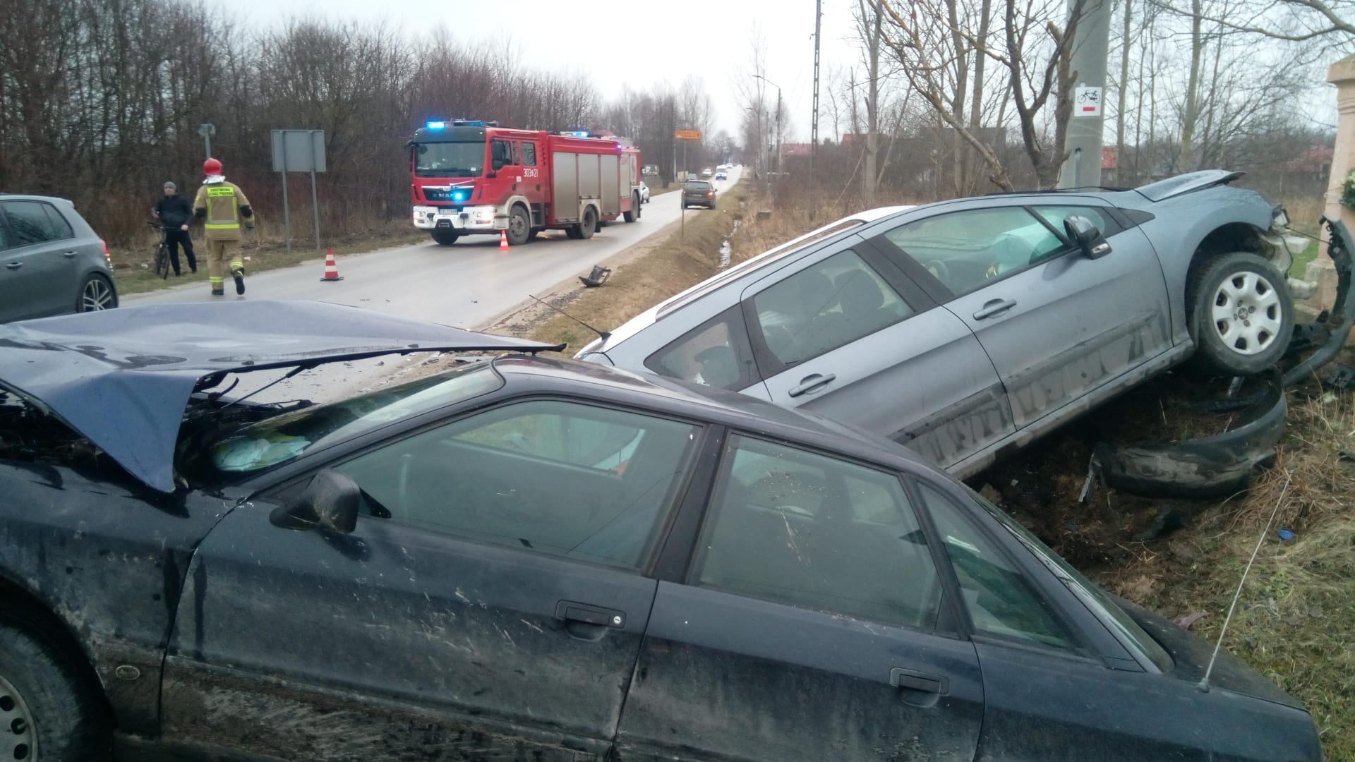 Zderzenie dwóch samochodów na ulicy Zamkowej w Podzamczu