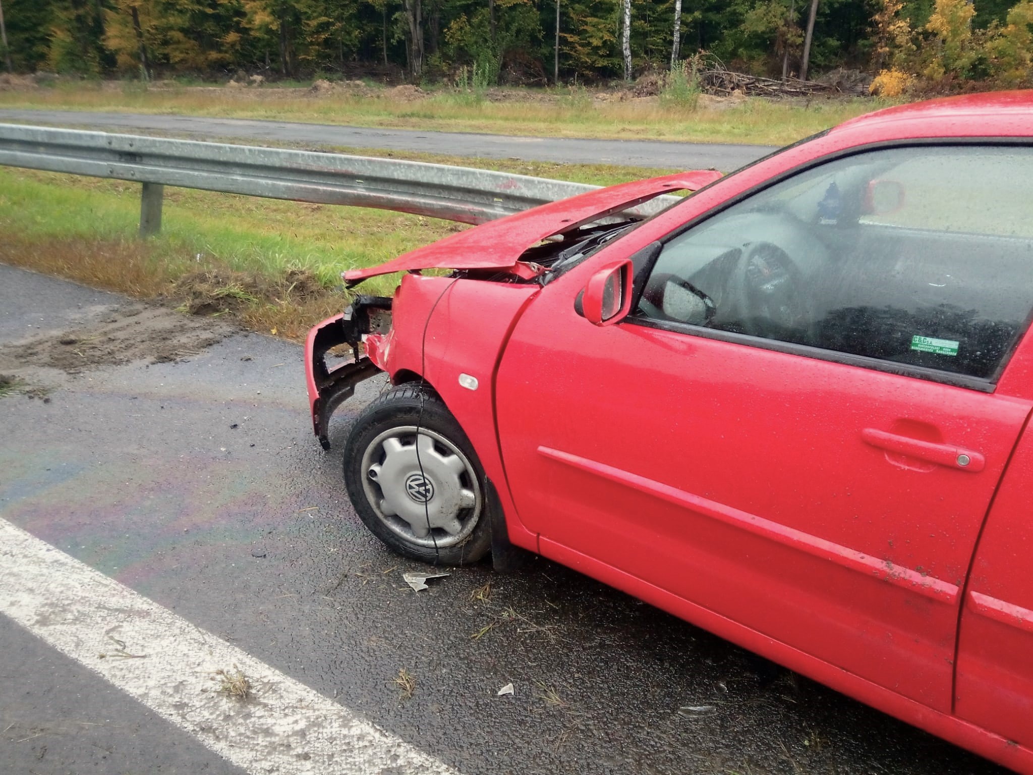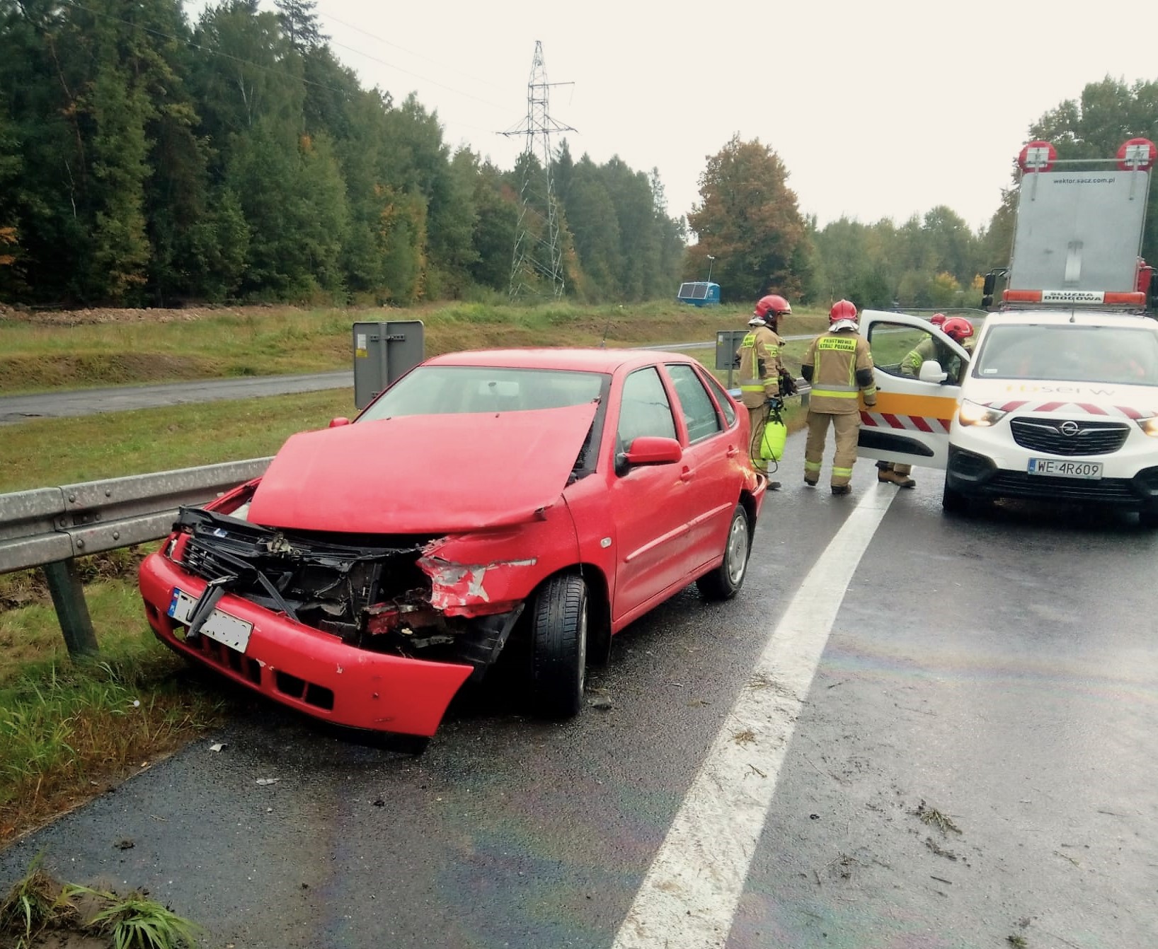 Volkswagen Polo jadąc trasą S7 na zjeździe w Wiśniówce w stronę Kielc uderzył w bariery energochłonne, w wyniku czego zablokowany został jeden pas jezdni. 2 osoby, które podróżowały autem wyszły z pojazdu i nie wymagały pomocy medycznej. Strażacy, po zabezpieczeniu i oznakowaniu terenu działań usunęli uszkodzone auto na pobocze. Przedstawiciel zarządcy drogi zabezpieczył i uprzątnął drogę usuwając także plamę płynów eksploatacyjnych. Droga została udrożniona.