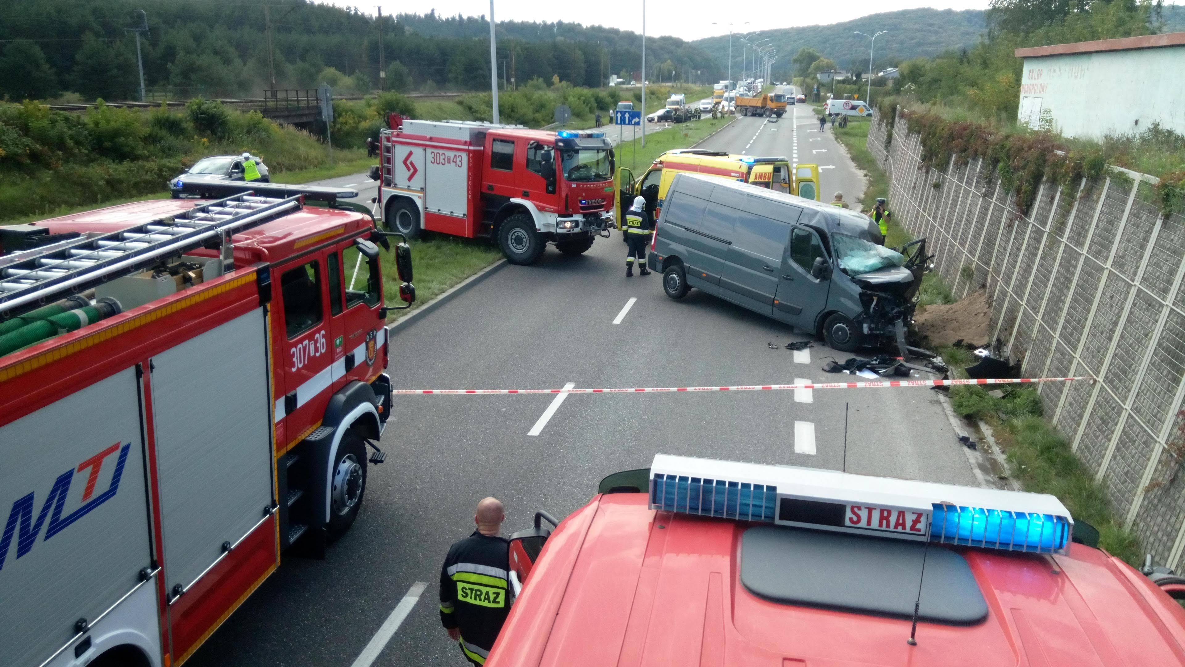 Po przybyciu na miejsce zdarzenia stwierdzono, że doszło do zderzenia trzech samochodów osobowych. W wypadku brały udział łącznie 4 osoby. Działania strazy pożarnej w pierwszej fazie akcji, po zabezpieczeniu miejsca zdarzenia polegały na wykonaniu dostępu umożliwiającego wydobycie kierującego pojazdem marki Renault Master.