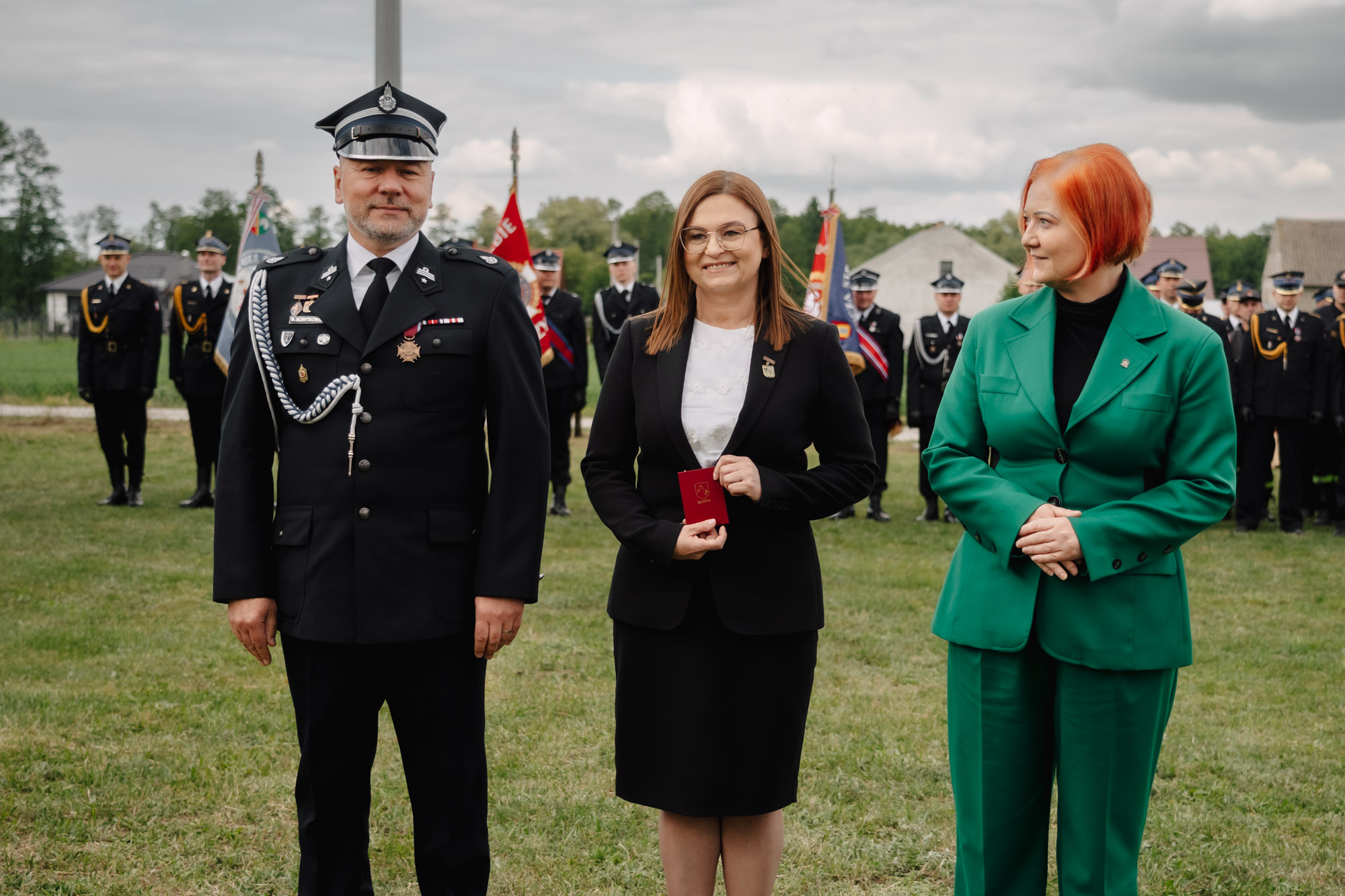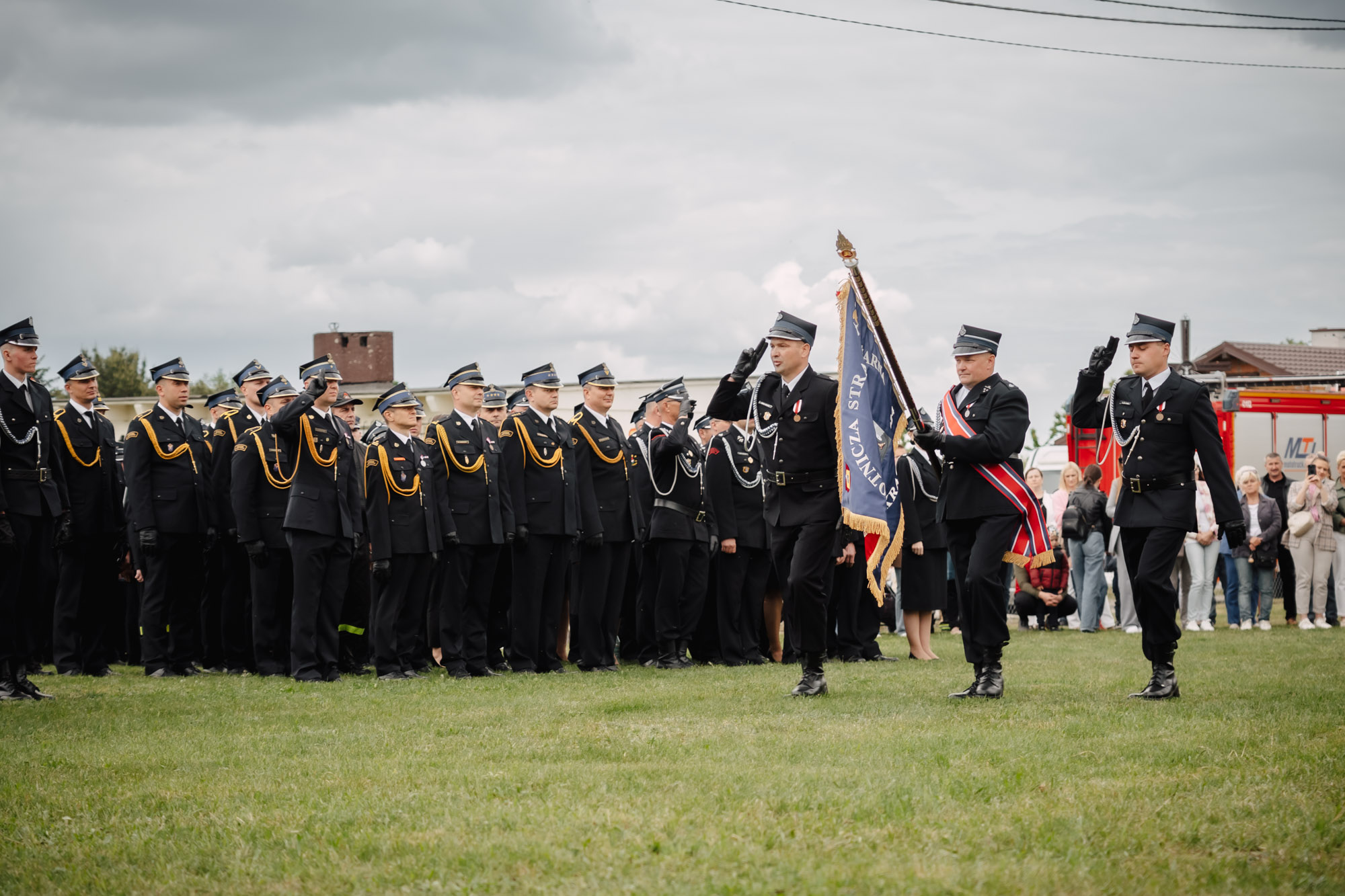 Następnie nastąpiło wręczenie nowego sztandaru dla Ochotniczej Straży Pożarnej w Krągoli oraz odznaczenie go Złotym Znakiem Związku.