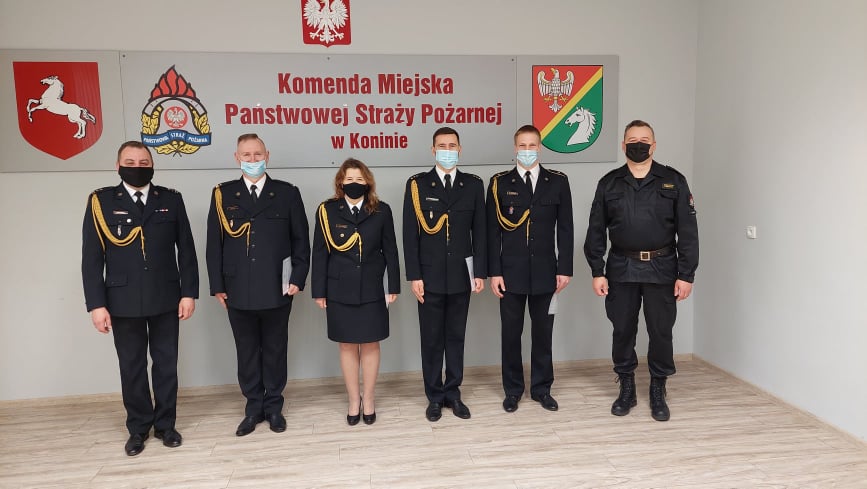 2 grudnia 2021 r. w świetlicy Komendy Miejskiej Państwowej Straży Pożarnej w Koninie bryg. Maciej Pilarski komendant miejski PSP w Koninie wraz z zastępcą bryg. Sebastianem Fabiszakiem wręczyli awanse na wyższe stopnie służbowe z okazji Narodowego Święta Niepodległości.