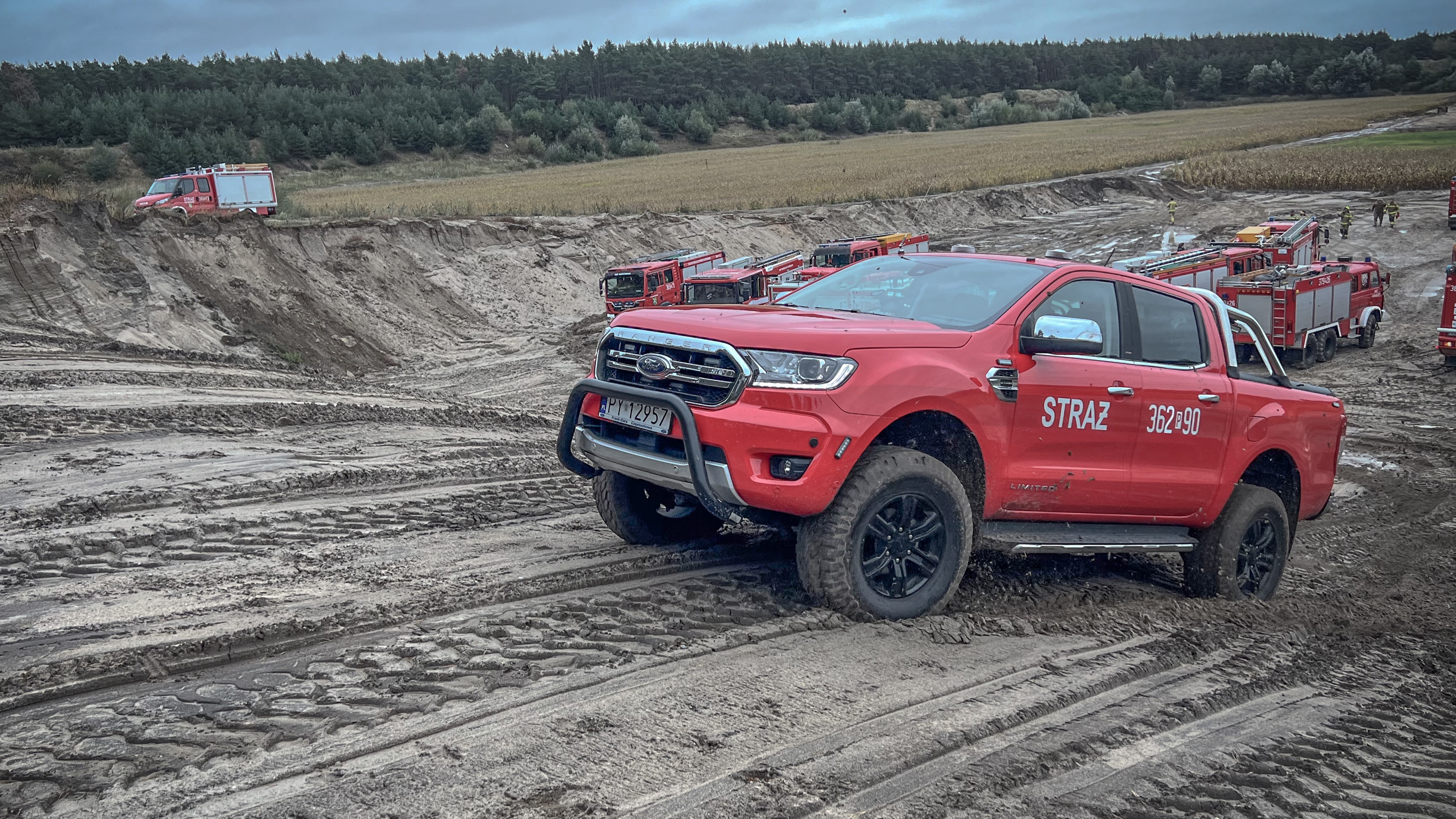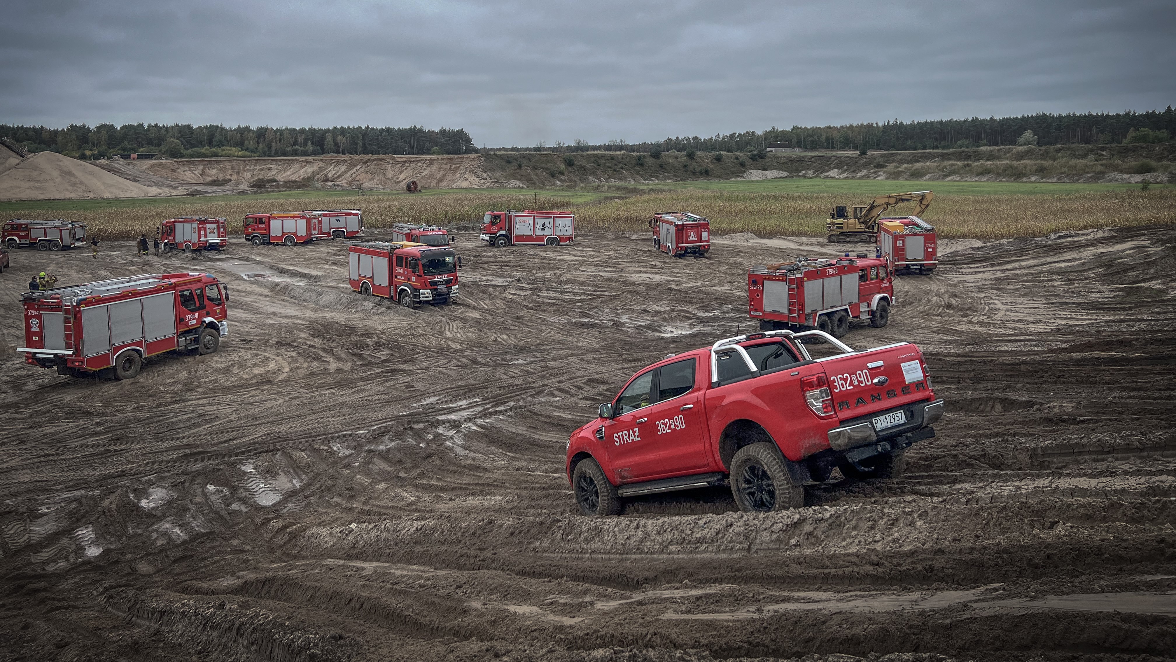 W sobotę 14 września 2024 r. na terenie żwirowni w m. Julianowo, gm. Wierzbinek, powiat koniński odbyły się ćwiczenia doskonalące jazdę w trudnym terenie pojazdami pożarniczymi.