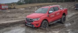 Po zakończeniu zajęć teoretycznych nastąpił przejazd kolumny pojazdów uczestniczących w szkoleniu na teren żwirowni w m. Julianowo. Tam uczestnicy w prawdziwych warunkach mogli sprawdzić umiejętności zarówno swoje jak i swoich pojazdów. Woda, błoto i strome podjazdy to tylko jedne z wielu czynników jakie utrudniały jazdę pojazdami.