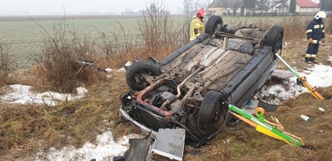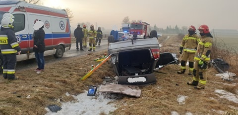 Po przybyciu na miejsce zdarzenia zastano leżący na dachu w przydrożnym rowie samochód osobowy marki Opel. Wewnątrz pojazdu znajdował się mężczyzna.
