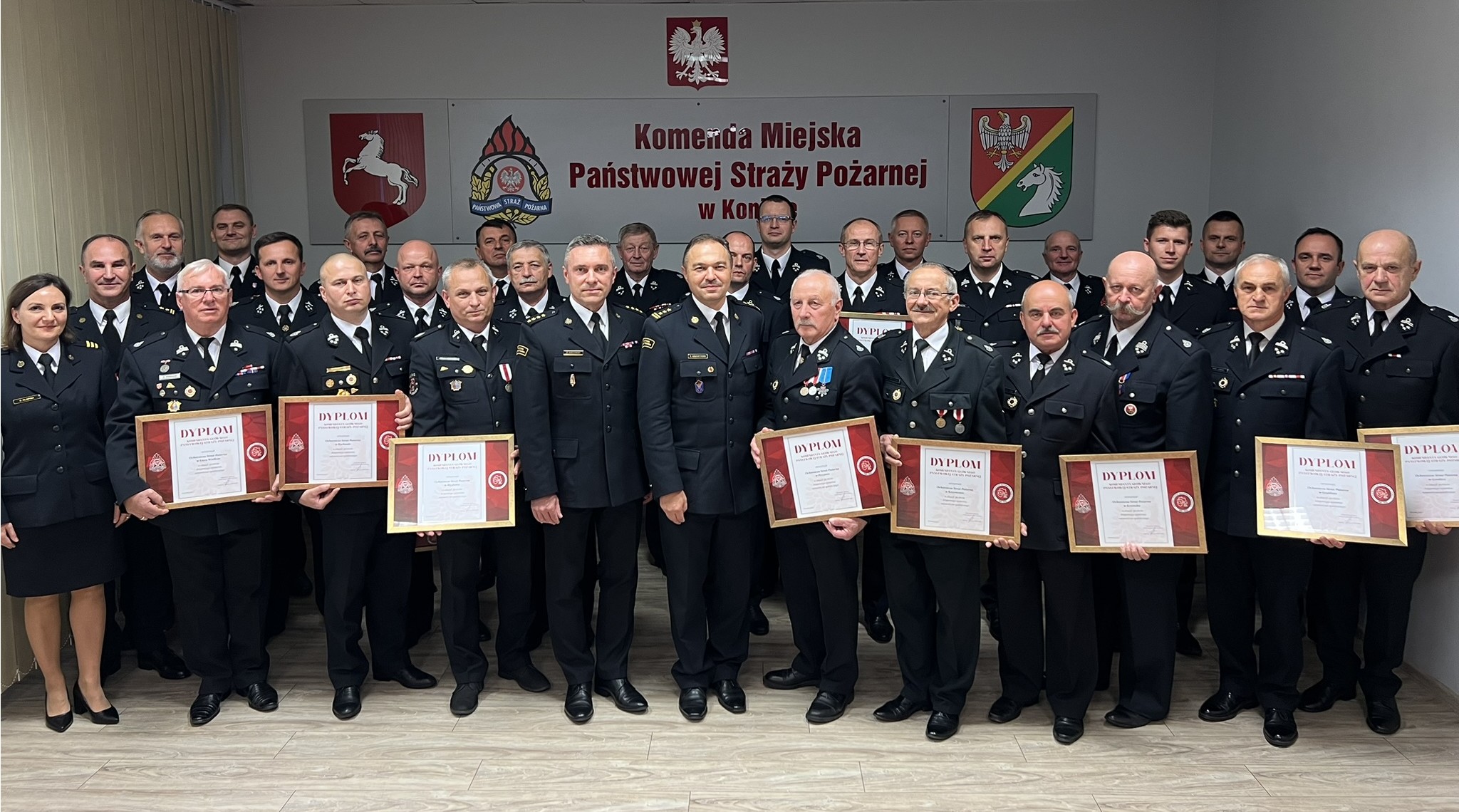 Dyplomy wręczył Komendant Miejski Państwowej Straży Pożarnej w Koninie st. bryg. Tomasz Kruszyński wraz z Zastępcą st. kpt. Michałem Karczewskim.
