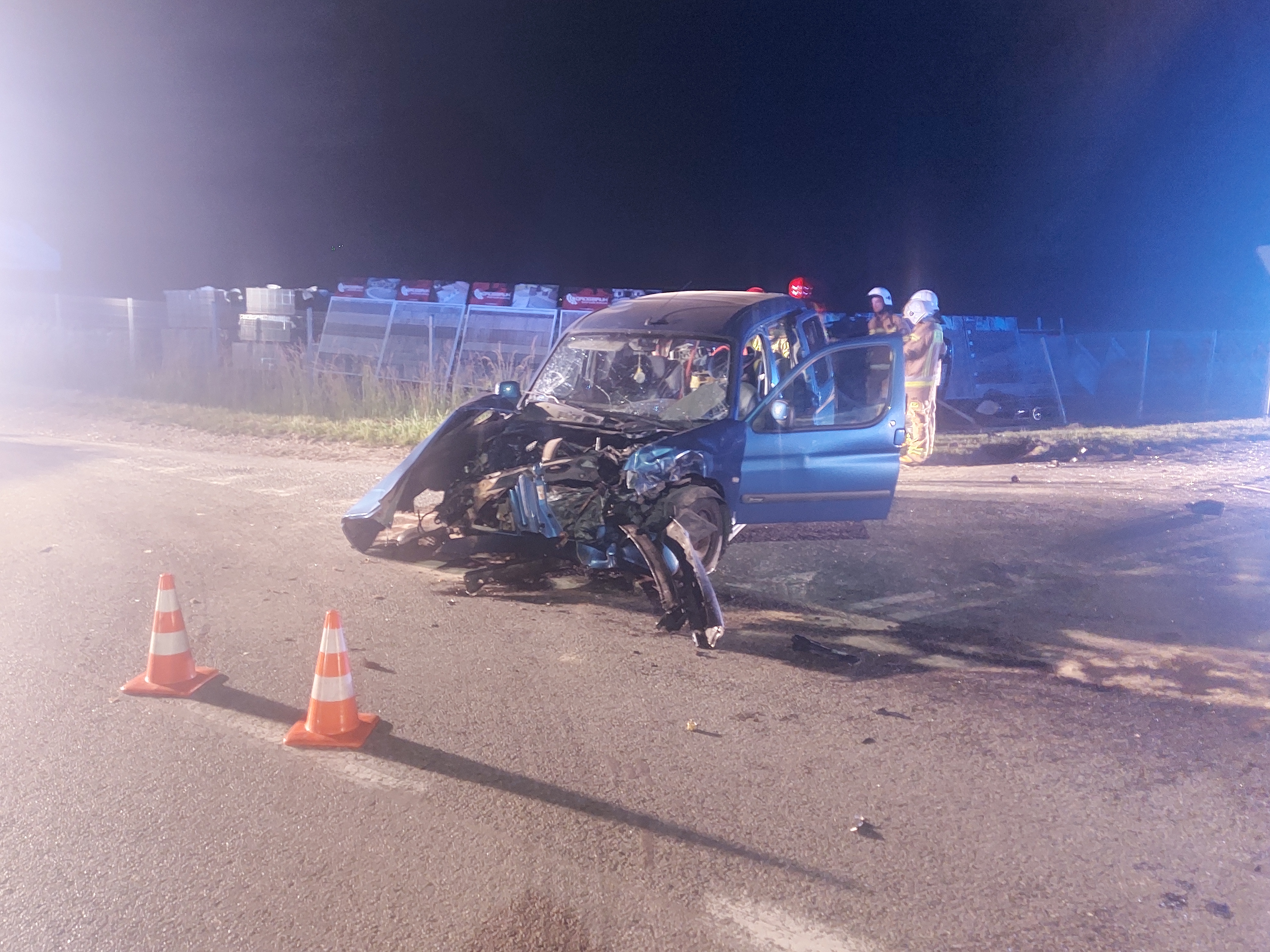 Po przybyciu na miejsce zdarzenia stwierdzono, że doszło do zderzenia dwóch samochodów osobowych. Pojazd marki Citroen zlokalizowany był na środku skrzyżowania, natomiast pojazd marki Audi znajdował się na boku, na sąsiedniej posesji, uszkadzając wcześniej jej ogrodzenie. Samochodem Audi podróżowały cztery osoby, natomiast Citroenem wyłącznie kierowca. Wszyscy uczestnicy wypadku byli pod opieką przybyłego na miejsce Zespołu Ratownictwa Medycznego.