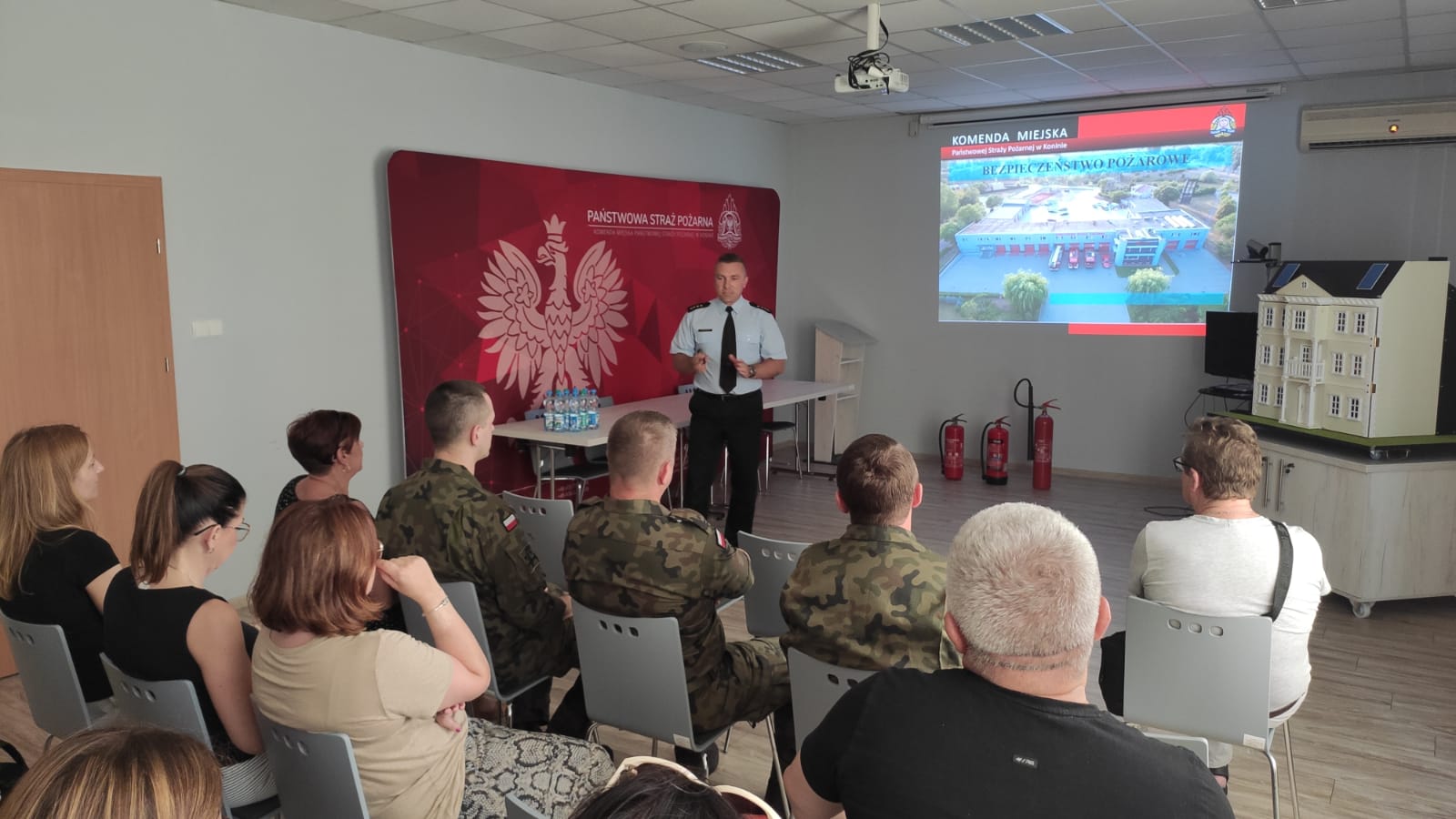 Podczas spotkania zapoznano gości ze strukturą oraz działalnością straży pożarnej. Funkcjonariusze Wydziału Kontrolno – Rozpoznawczego omówili najczęściej występujące przyczyny powstania pożarów oraz miejscowych zagrożeń, a także sposoby postępowania w przypadku wystąpienia ewentualnego zdarzenia.