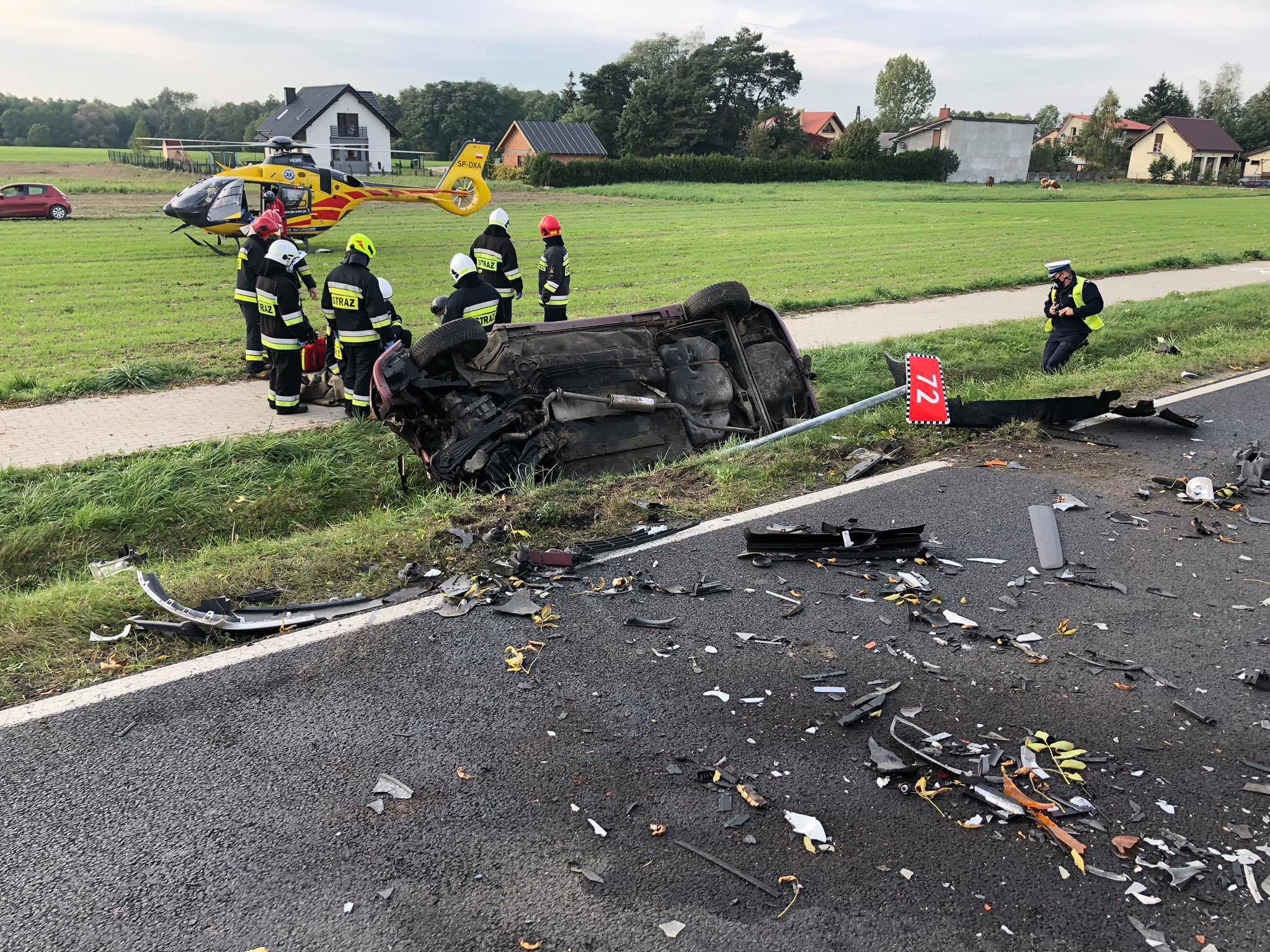 Zgłoszenie o pierwszym zdarzeniu wpłynęło do Stanowiska Kierowania Komendanta Miejskiego PSP w Koninie o godz. 14.19. Na drodze krajowej nr 72 w miejscowości Żdżary, gmina Stare Miasto doszło do wypadku z udziałem dwóch samochodów. Po przybyciu na miejsce zdarzenia pierwszych zastępów straży pożarnej zastano dwa samochody osobowe znajdujące się w przydrożnych rowach. Pojazdami podróżowały łącznie trzy osoby. Działania strażaków polegały na udzieleniu poszkodowanym kwalifikowanej pierwszej pomocy oraz odłączeniu zasilania w samochodach. Wszystkie osoby biorące udział w zdarzeniu zostały przetransportowane do szpitala przez Zespoły Ratownictwa Medycznego oraz Lotnicze Pogotowie Ratunkowe. Droga krajowa była całkowicie zablokowana.