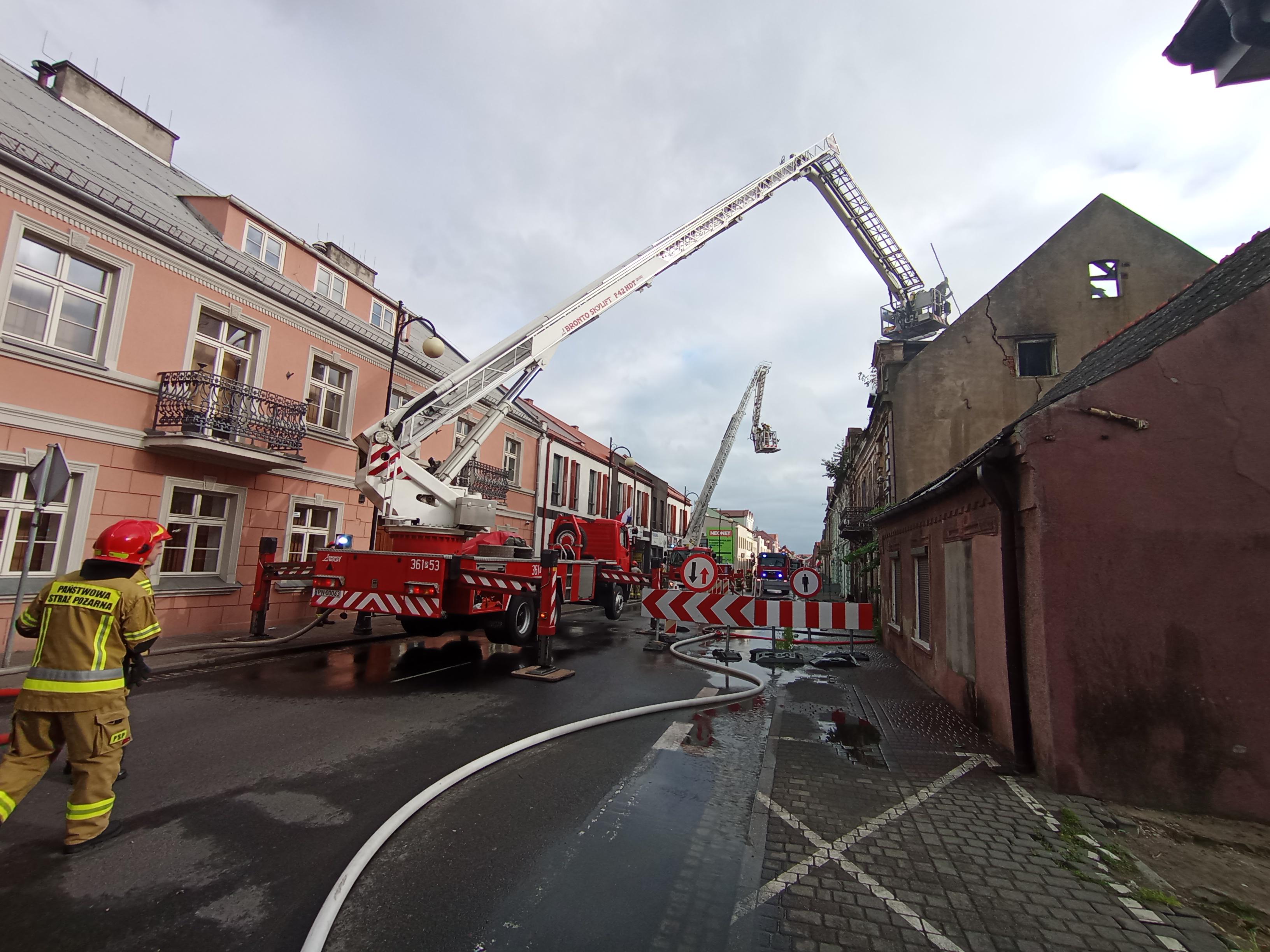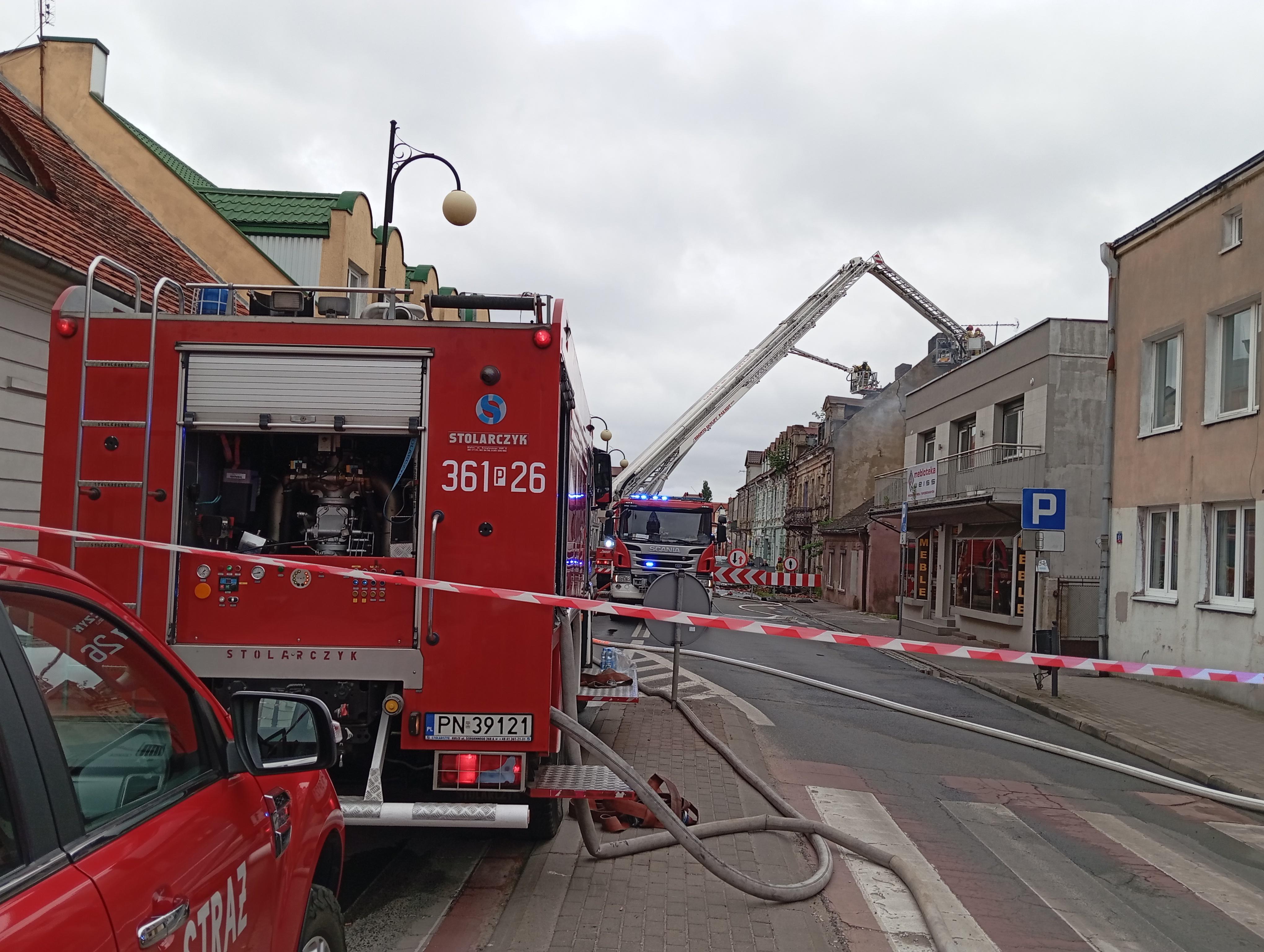 65 strażaków przez ponad 10 godzin zmagało się z pożarem kamienicy w Koninie przy ul. 3 Maja.
