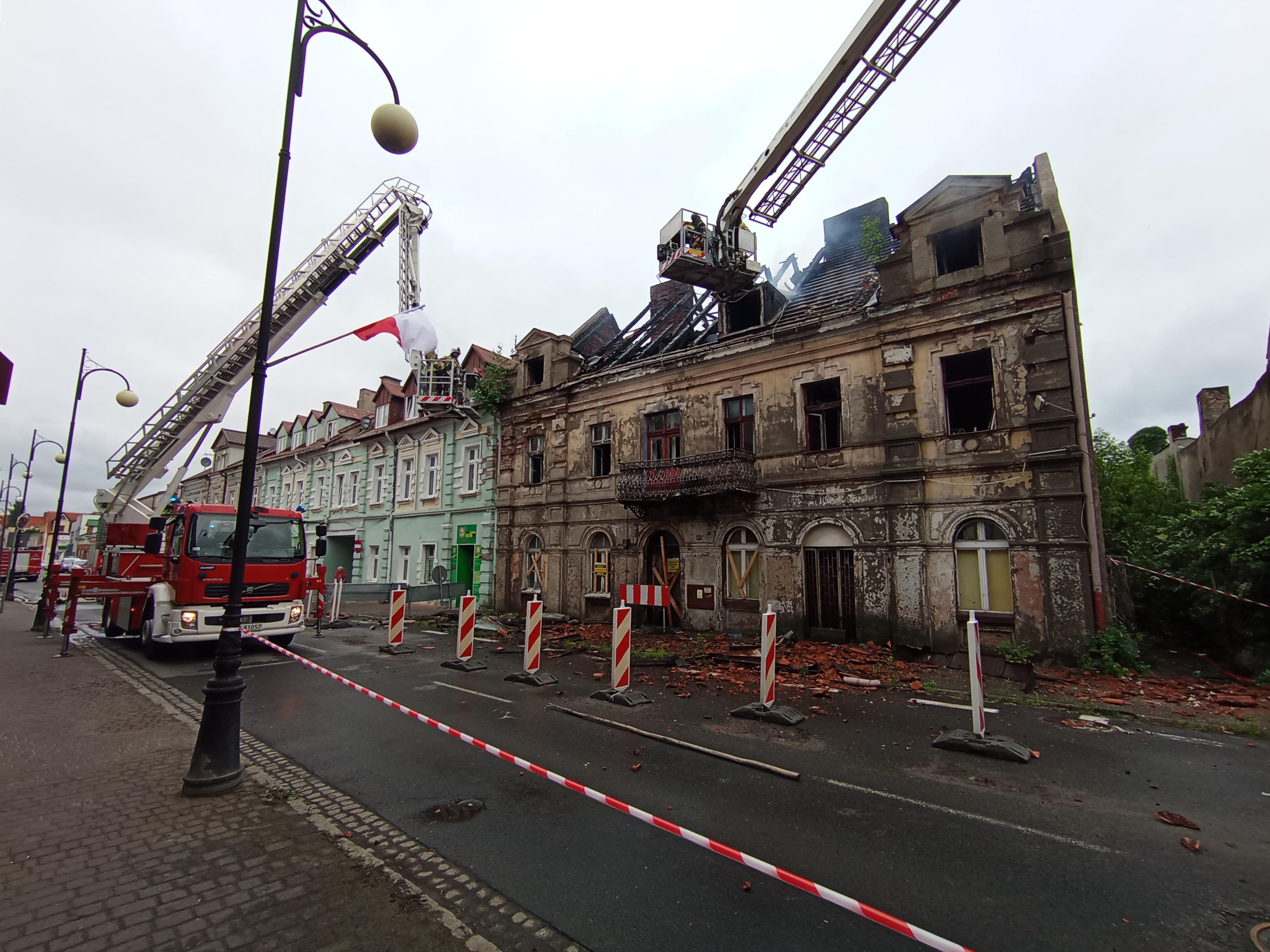 Po zlokalizowaniu pożaru oraz pod nadzorem Powiatowego Inspektora Nadzoru Budowalnego strażacy prowadzili prace rozbiórkowe konstrukcji budynku, w celu wyeliminowania zagrożenia zawalenia się części kamienicy na sąsiednie budynki oraz ulicę 3 Maja.
