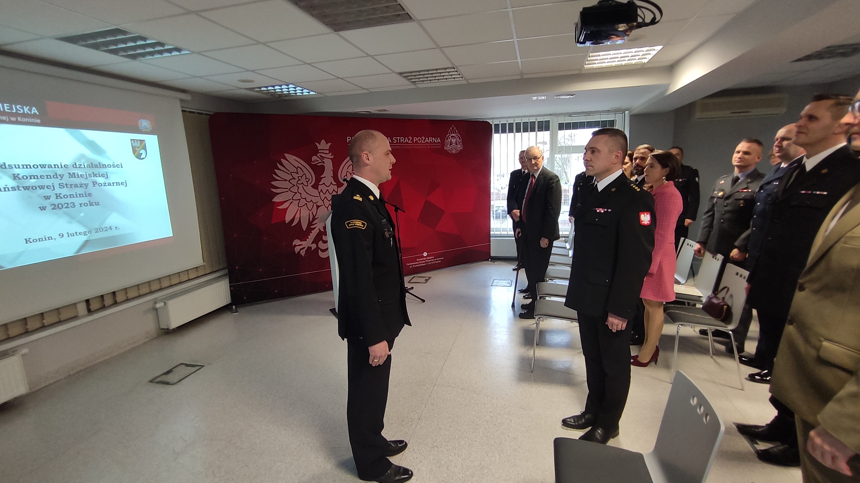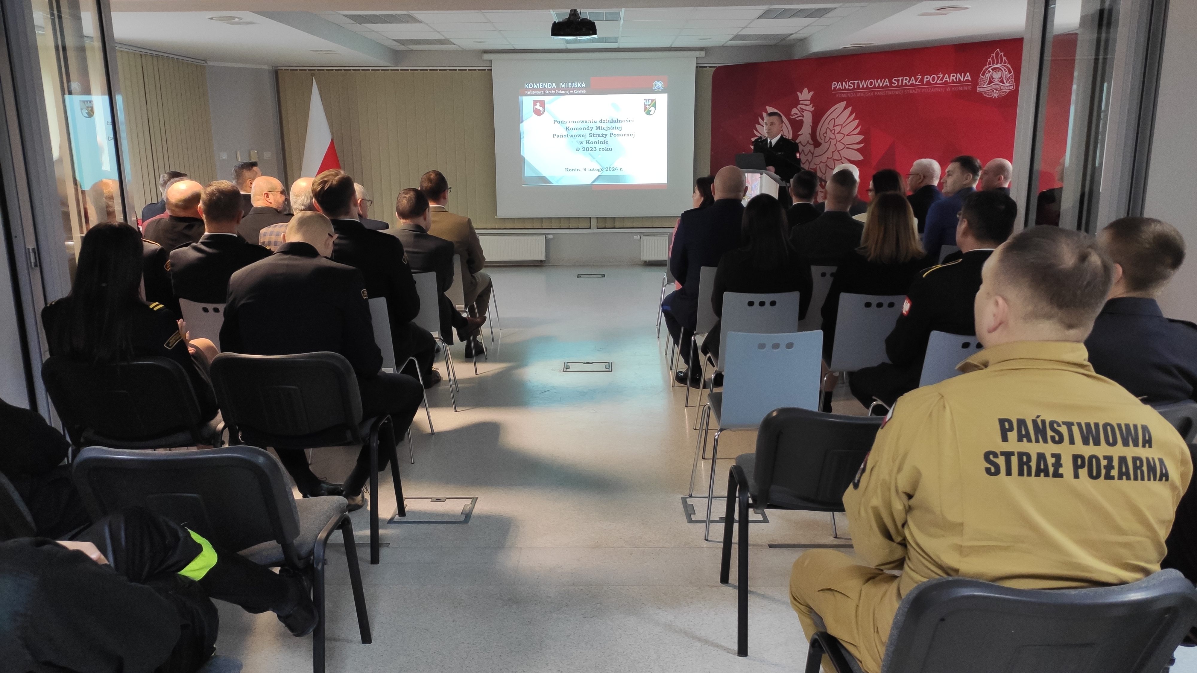 Na naradzie podsumowującej działalność Komendy Miejskiej Państwowej Straży Pożarnej w Koninie za rok 2023 pojawiło się grono gości z instytucji współpracujących i wspierających konińskich strażaków. Swoją obecnością zaszczycili m.in.: