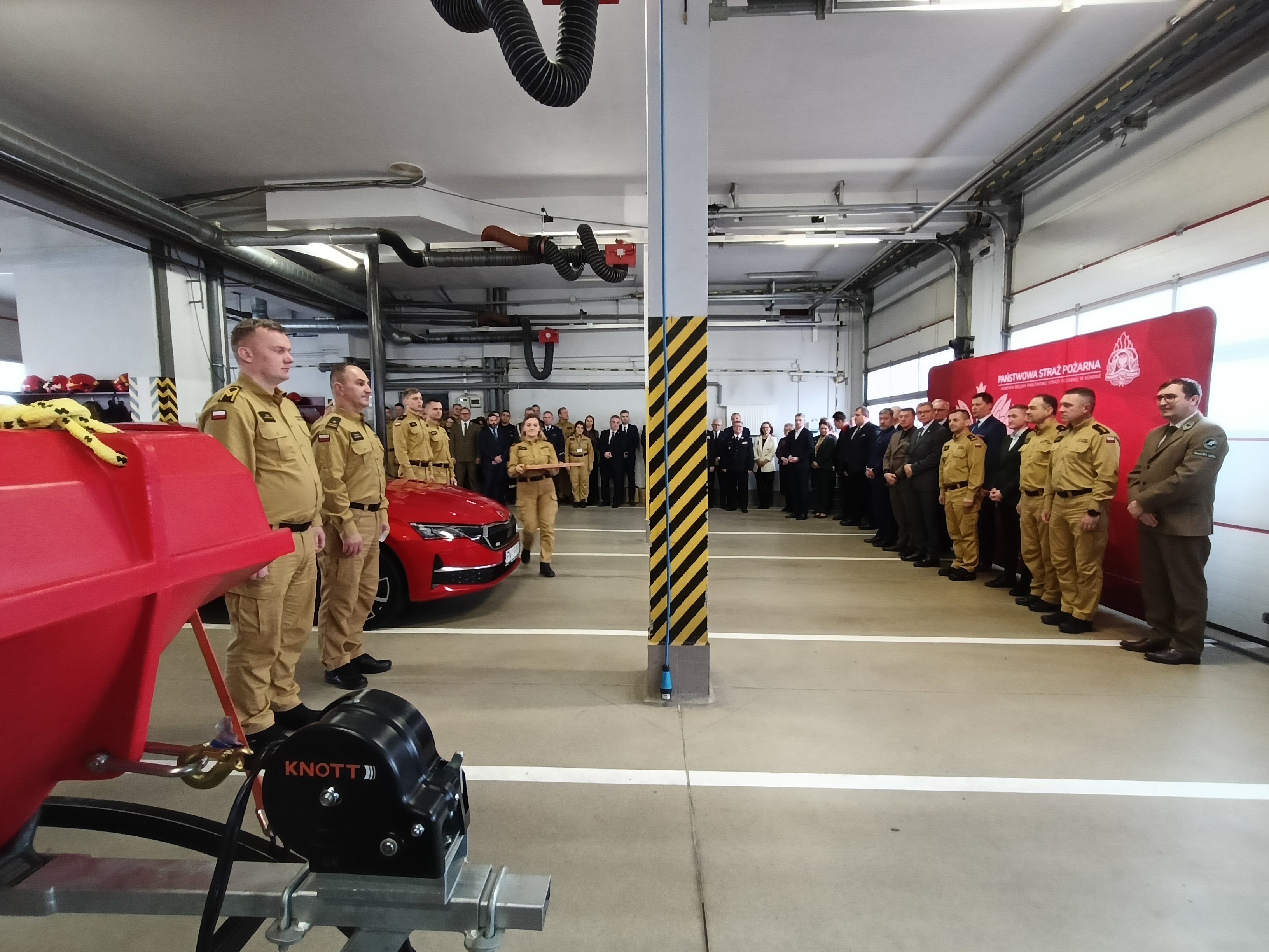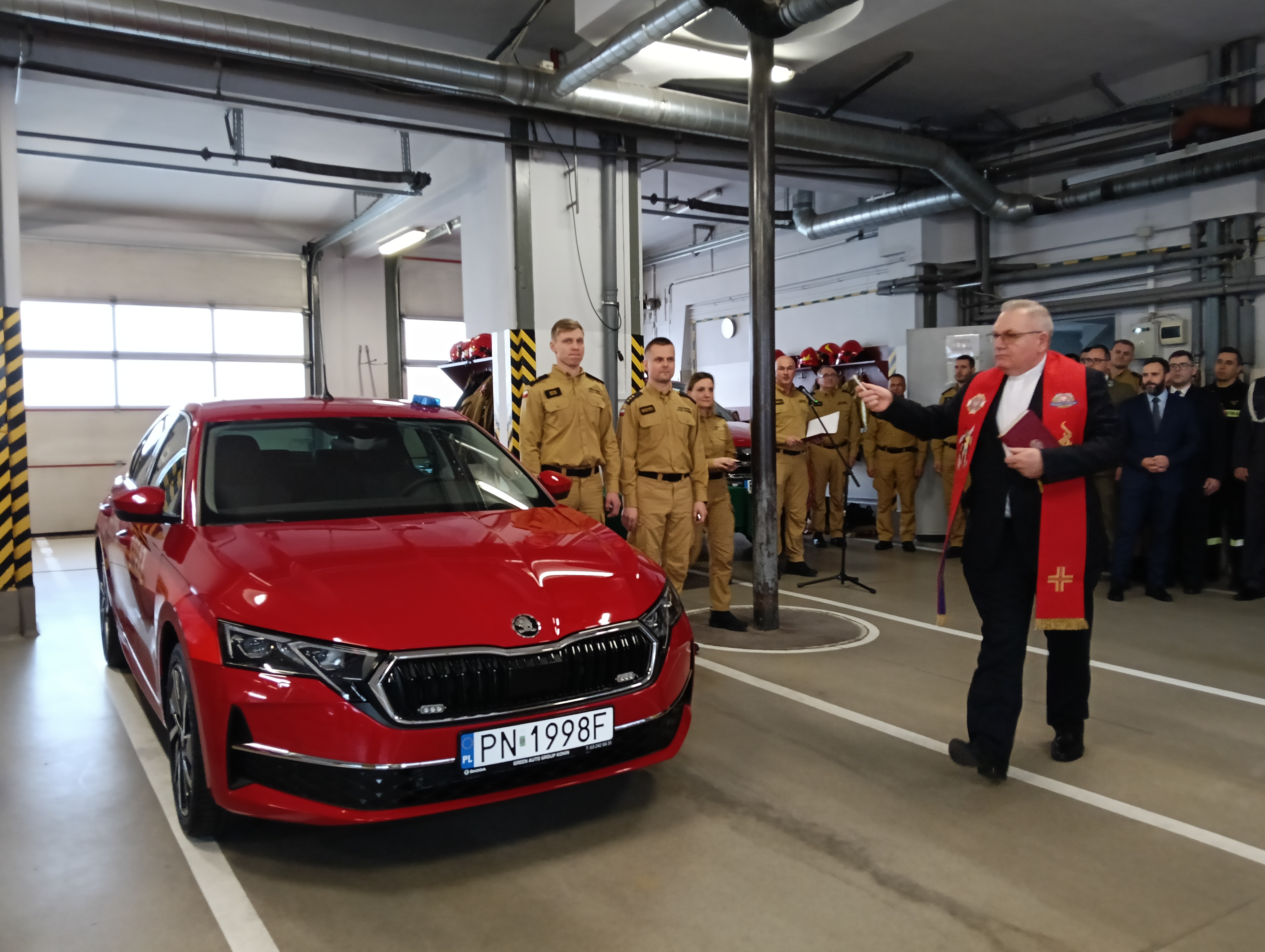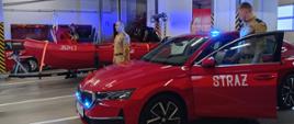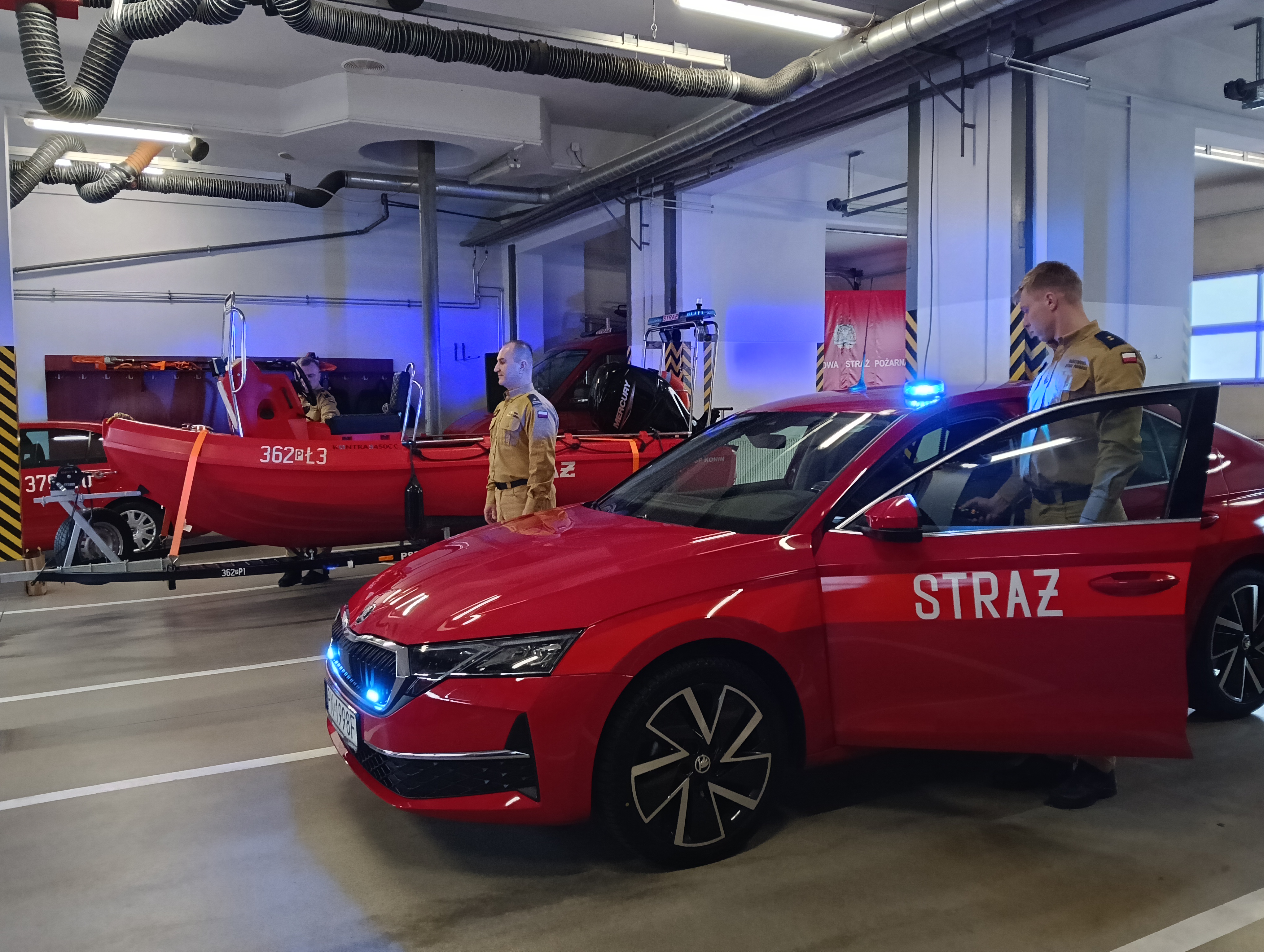 Po zakończeniu odprawy w garażu Jednostki Ratowniczo-Gaśniczej Nr 1 w Koninie nastąpiło przekazanie strażakom lekkiego samochodu operacyjnego Skoda Octavia oraz łodzi ratowniczej Kontra, zakupionych w roku 2024 dla Komendy Miejskiej Państwowej Straży Pożarnej w Koninie.