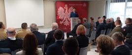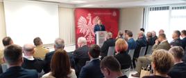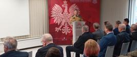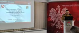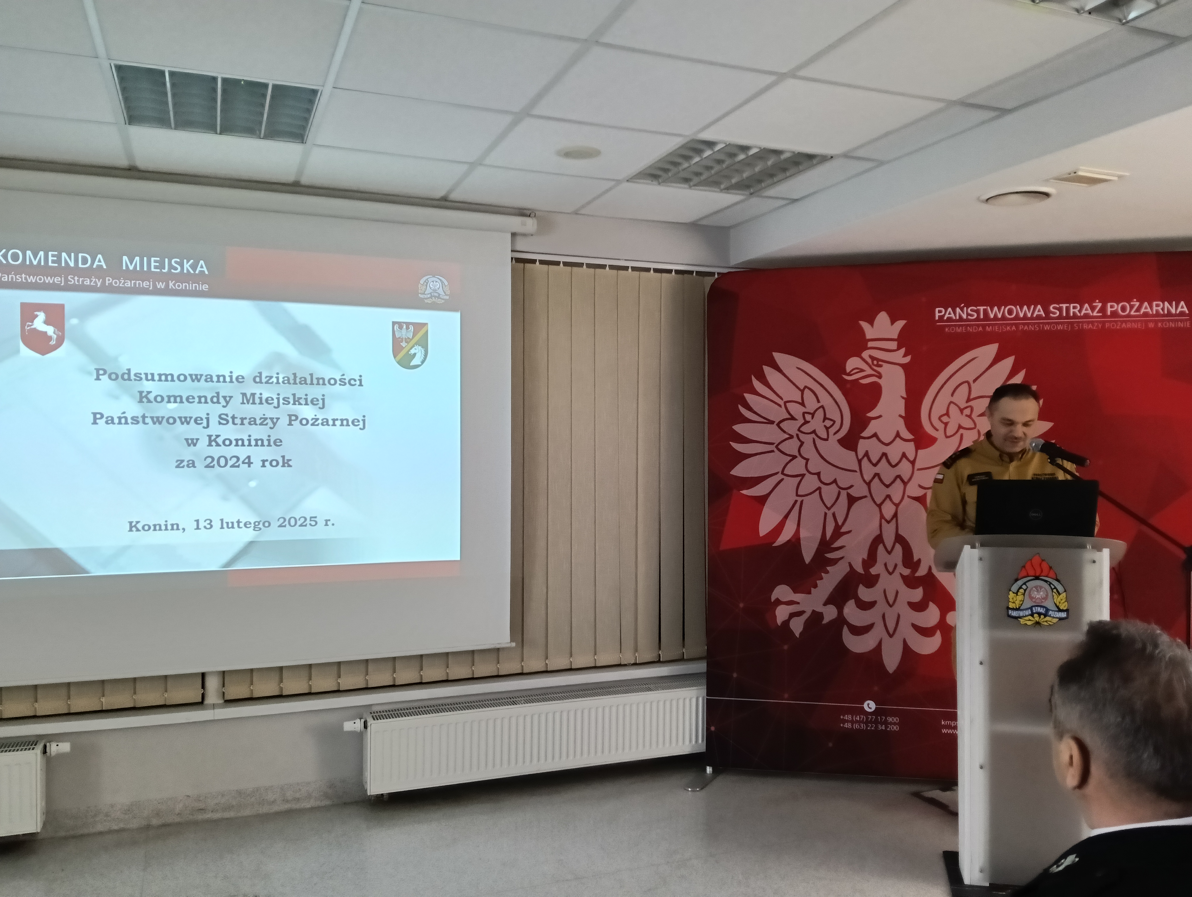 Bryg. Tomasz Kruszyński Komendant Miejski Państwowej Straży Pożarnej w Koninie przedstawił sprawozdanie z działalności komendy za rok 2024. W dalszym wystąpieniu podziękował za dotychczasową współpracę i wsparcie Wielkopolskiemu Komendantowi Wojewódzkiemu Państwowej Straży Pożarnej, samorządowcom, instytucjom, strażakom z Ochotniczych Straży Pożarnych oraz wszystkim funkcjonariuszom i pracownikom cywilnym z Komendy Miejskiej PSP w Konnie. Przedstawił również główne kierunki działań Komendy Miejskiej PSP w Koninie na rok 2025.