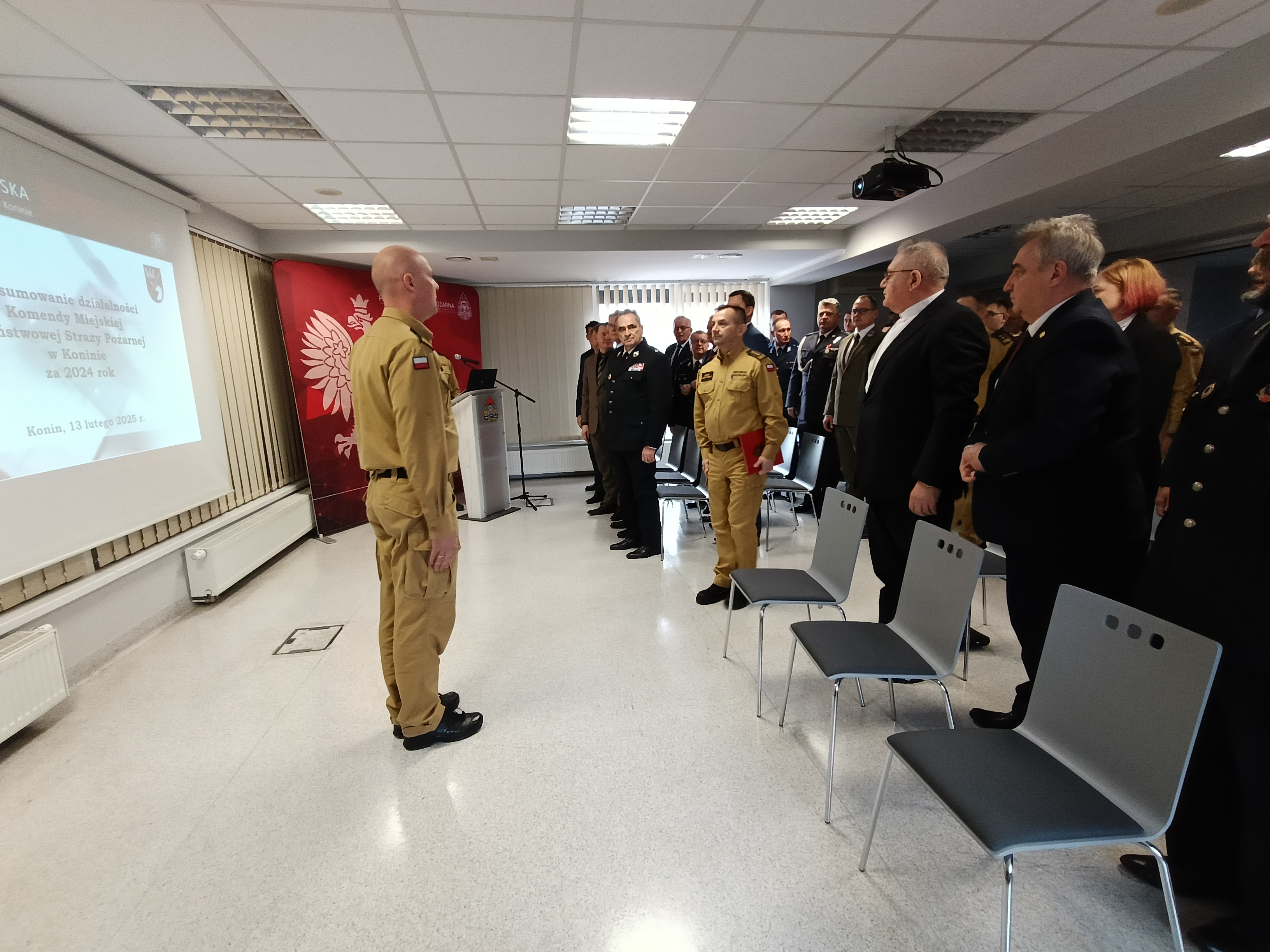 13 lutego 2025 r. w Komendzie Miejskiej Państwowej Straży Pożarnej w Koninie odbyła się odprawa służbowa podsumowująca działalność konińskich strażaków w roku 2024.