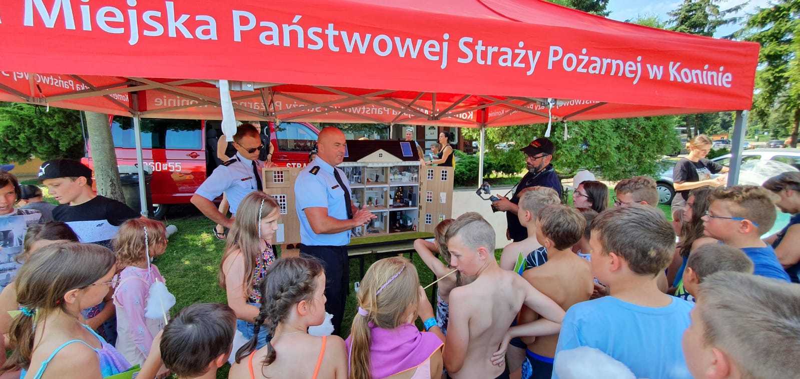 28 lipca 2021 r. funkcjonariusze Komendy Miejskiej PSP w Koninie uczestniczyli w działaniach profilaktyczno – edukacyjnych pn. „BEZPIECZNE LATO W MIEŚCIE”, które odbyły się na terenie Miejskiego Ośrodka Wypoczynkowego Przystań Gosławice.