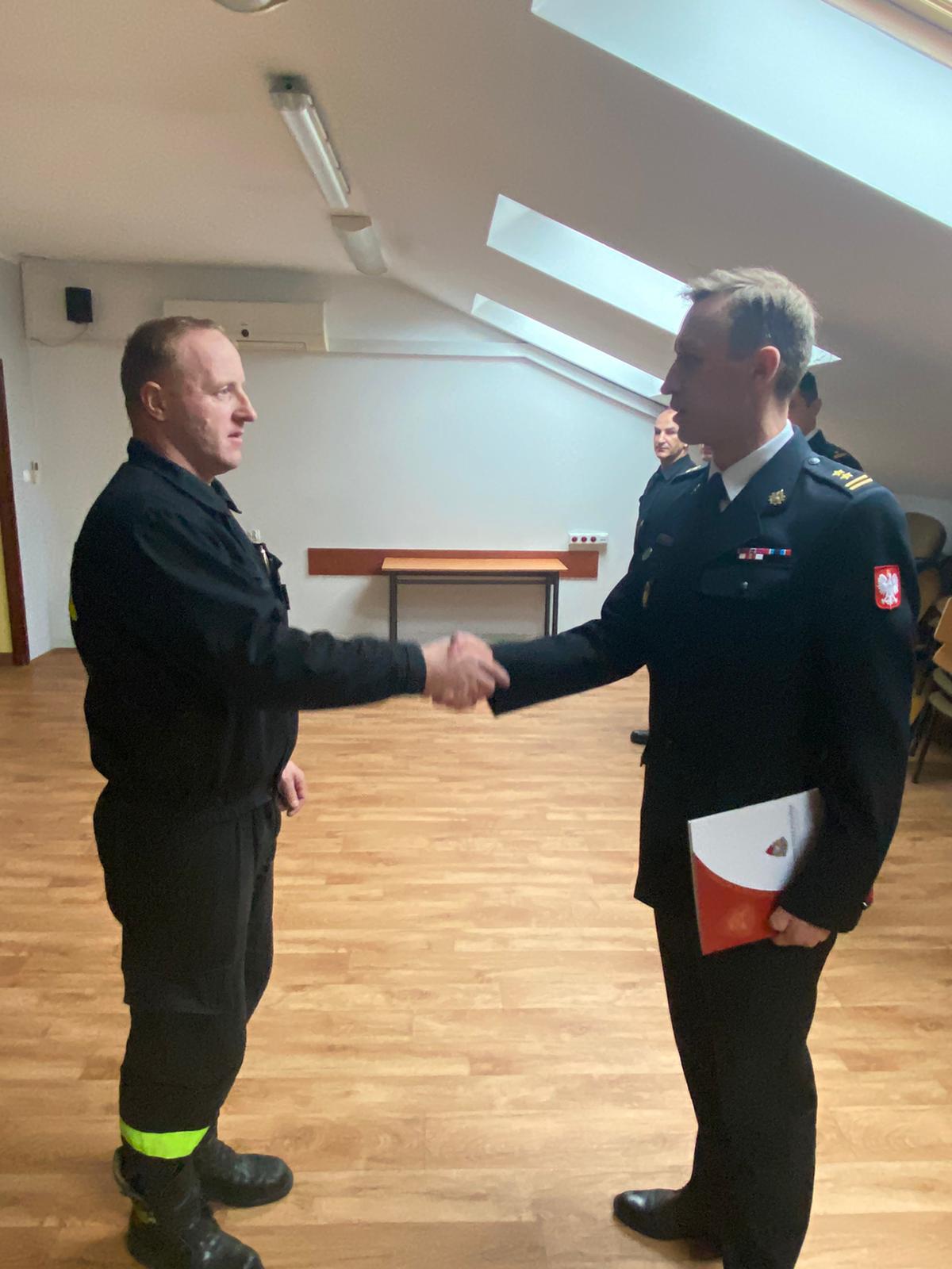 23 listopada 2022 r. na terenie Jednostki Ratowniczo – Gaśniczej Nr 2 w Koninie bryg. Tomasz Grelak Zastępca Wielkopolskiego Komendanta Wojewódzkiego PSP w obecności mł. bryg. Michała Kierzka Naczelnika Ośrodka Szkolenia Komendy Wojewódzkiej PSP w Poznaniu, bryg. Macieja Pilarskiego Komendanta Miejskiego PSP w Koninie oraz strażaków z JRG Nr 2 w Koninie wręczył nagrodę Wielkopolskiego Komendanta Wojewódzkiego PSP st. ogn. Przemysławowi Kruszynie.