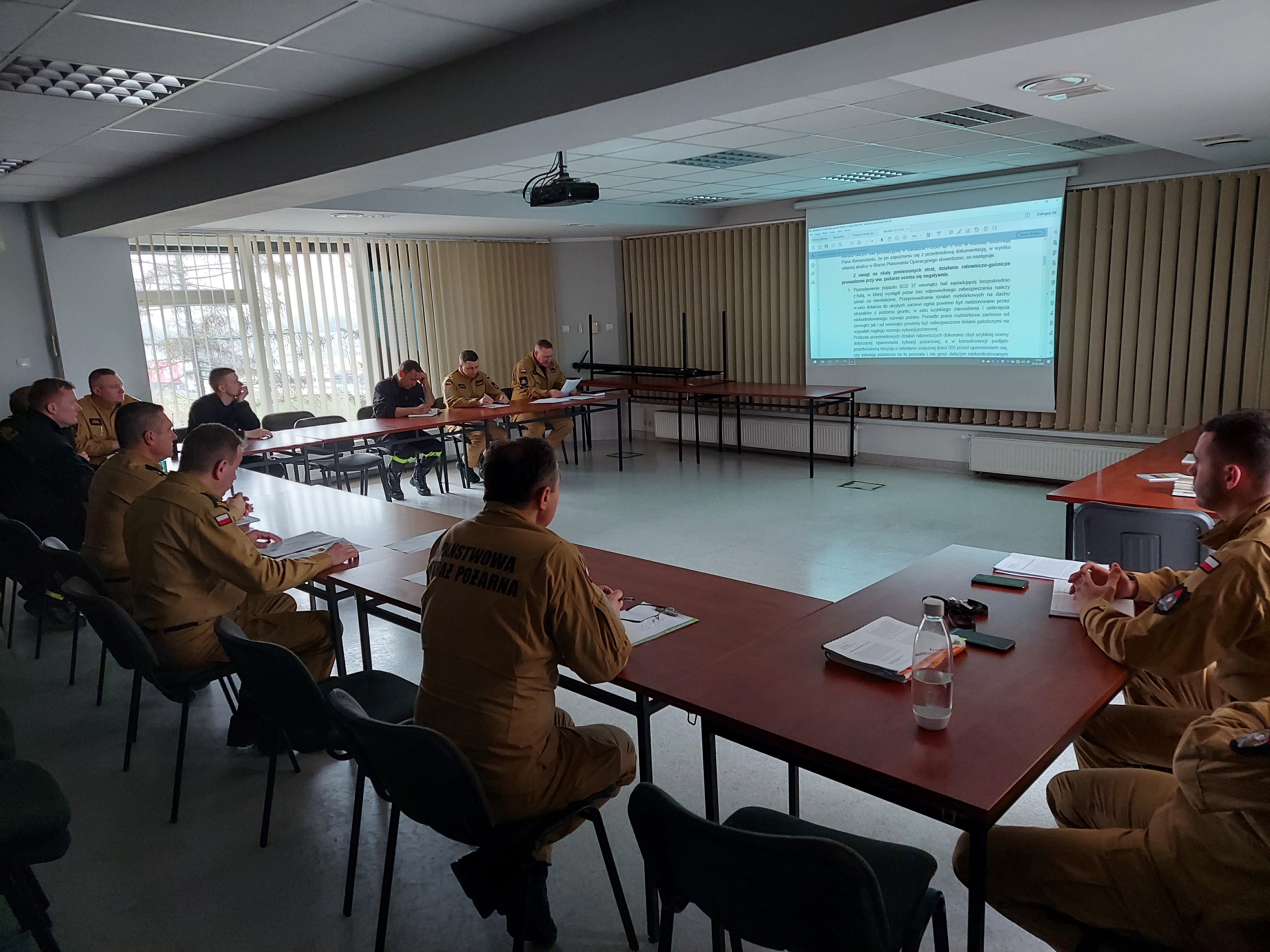 W dniu 7 kwietnia 2023r. w Komendzie Miejskiej Państwowej Straży Pożarnej w Koninie obyła się narada operacyjna, skierowana w głównej mierze dla funkcjonariuszy pełniących dyżur oficera w dyspozycji Komendanta Miejskiego PSP w Koninie. W naradzie udział również wzięli dowódcy systemu zmianowego oraz Stanowiska Kierowania Komendanta Miejskiego, pełniący tego dnia służbę.