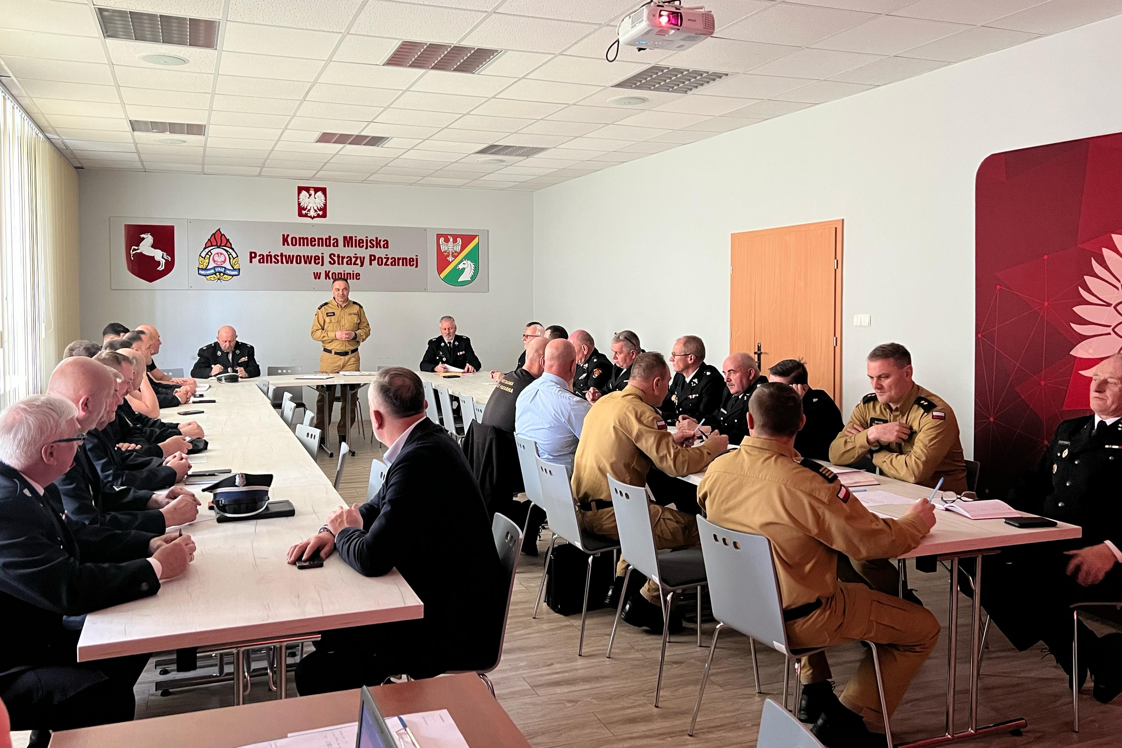 W poniedziałek, 14 kwietnia 2025 roku o godzinie 15:30 na świetlicy Komendy Miejskiej PSP w Koninie odbyła się narada operacyjna z udziałem Zarządu Oddziału Powiatowego Ziemskiego ZOSP RP w Koninie, Zarządu Oddziału Powiatowego Grodzkiego ZOSP RP w Koninie, Komendantów Gminnych ZOSP RP oraz Naczelników Ochotniczych Straży Pożarnych włączonych do Krajowego Systemu Ratowniczo-Gaśniczego.