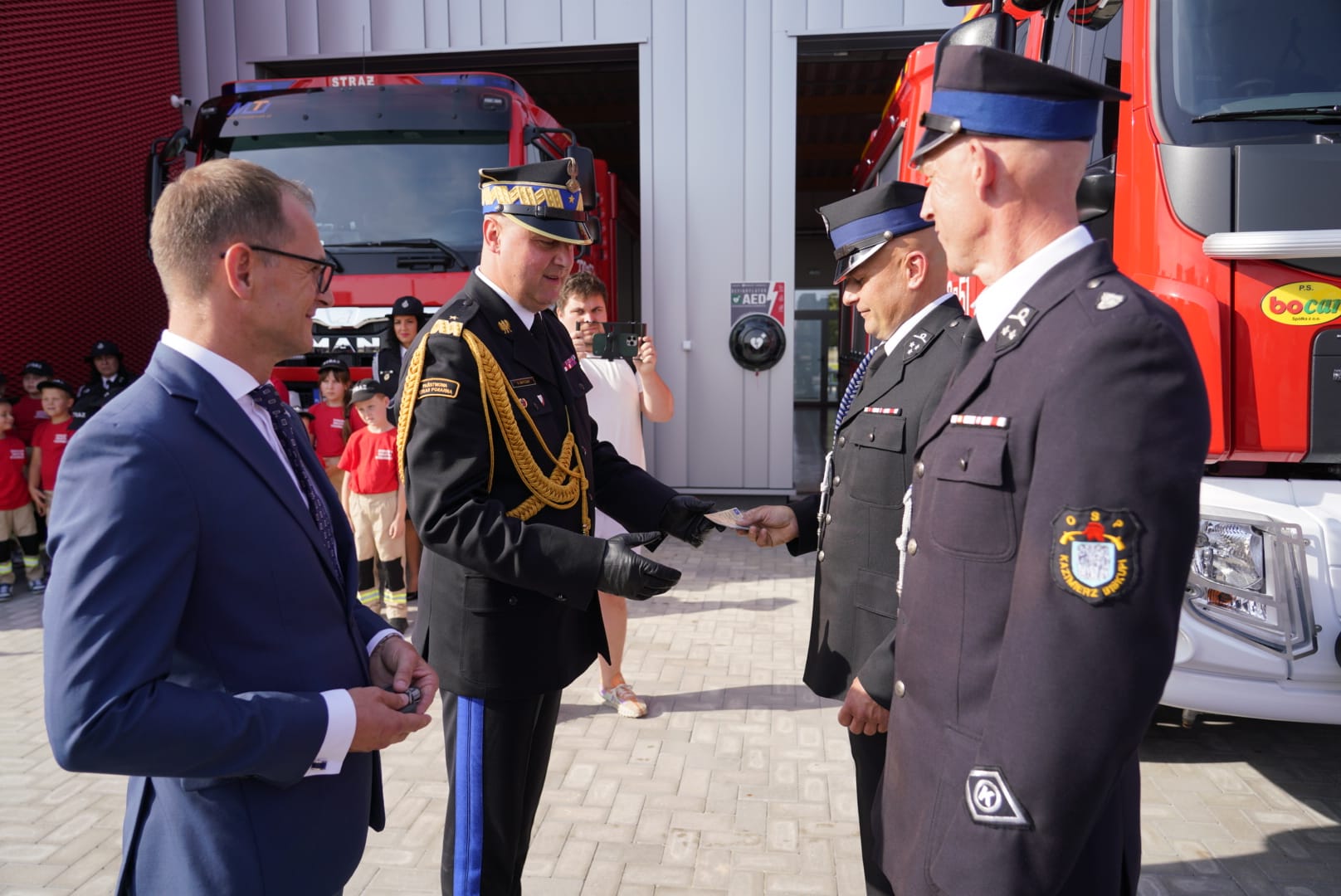 Ponadto podczas uroczystości nadbryg. Dariusz Matczak Wielkopolski Komendant Wojewódzki PSP wraz z Grzegorzem Maciejewskim Wójtem Gminy Kazimierz Biskupi dokonali uroczystego przekazania samochodu ratowniczo – gaśniczego dla druhów z OSP Kazimierz Biskupi.