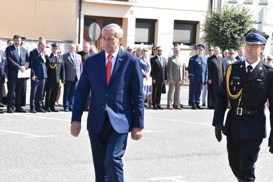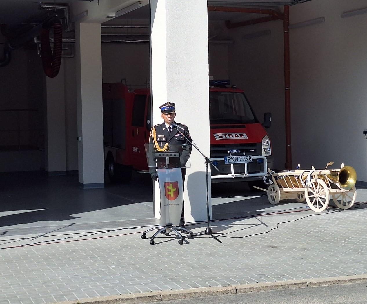 Uroczystość rozpoczęła się na Rynku Miejskim w Rychwale od złożenia meldunku przez dowódcę uroczystości mł. bryg. Piotra Szafrańskiego, Sekretarzowi Stanu w Ministerstwie Spraw Wewnętrznych i Administracji Wiesławowi Szczepańskiemu.