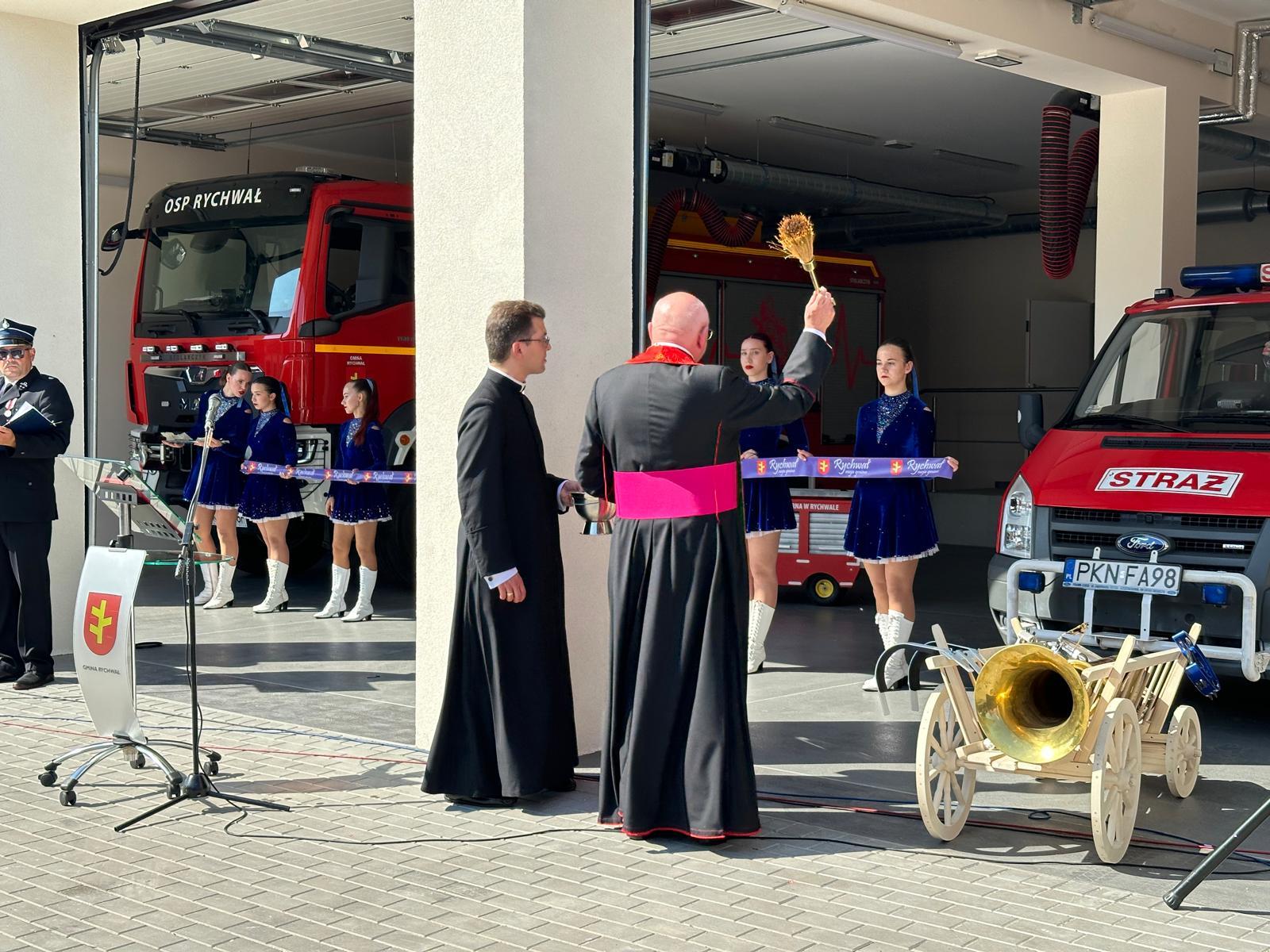 Po przywitaniu gości zostały wręczone odznaczenia, wyróżnienia i podziękowania oraz proporzec dla Młodzieżowej Drużyny Pożarniczej w Rychwale. Następnie nastąpił przemarsz uczestników uroczystości przed budynek remizy OSP w Rychwale, gdzie dokonano uroczystego przecięcia wstęgi oraz poświęcenia strażnicy, krzyża i figurki św. Floriana przez Biskupa Diecezji Włocławskiej ks. Krzysztofa Wętkowskiego.