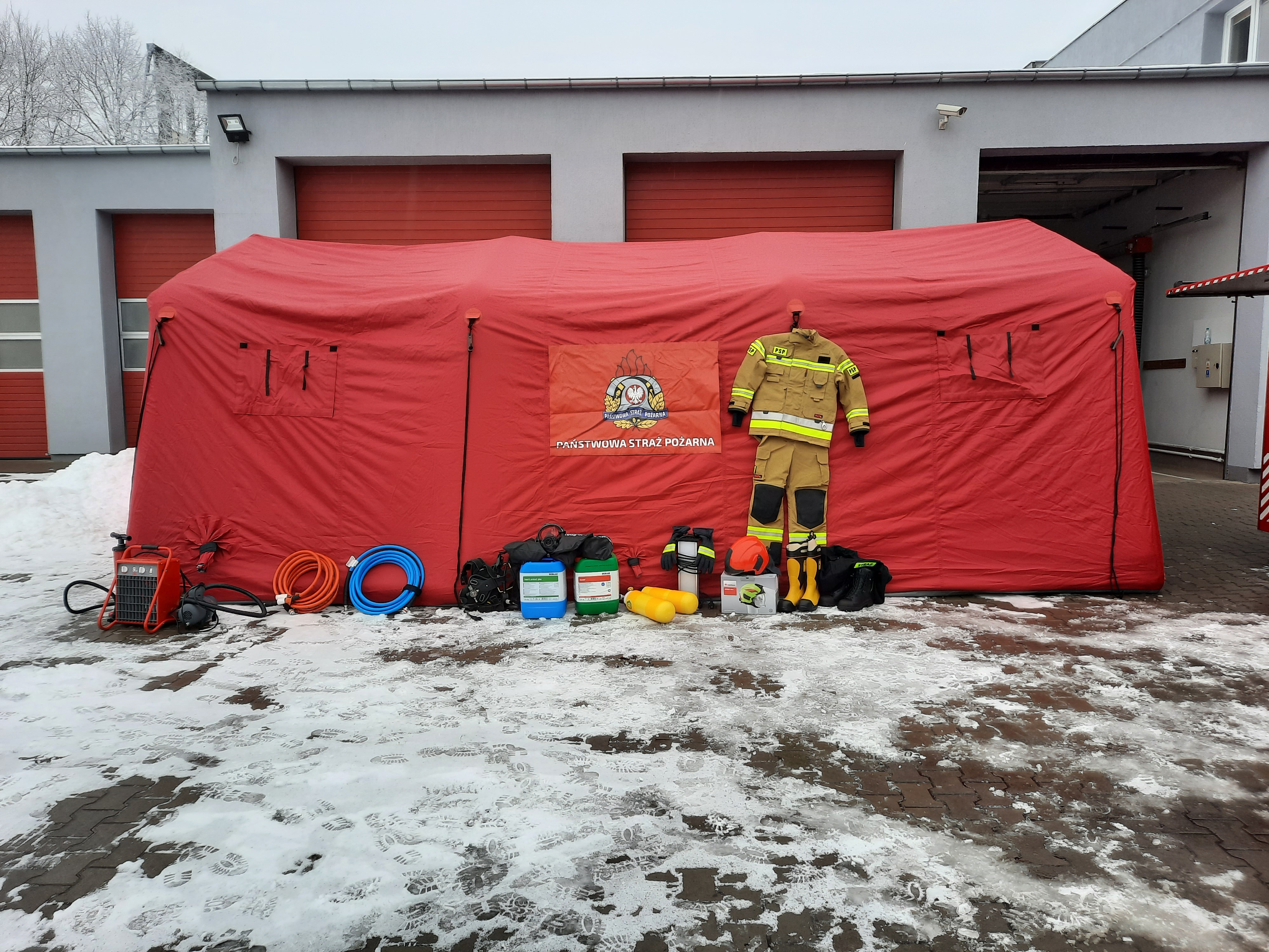 - sprzęt ochrony układu oddechowego (2 szt. aparatów oddechowych, 4 maski nadciśnieniowe, 19 szt. butli stalowych),