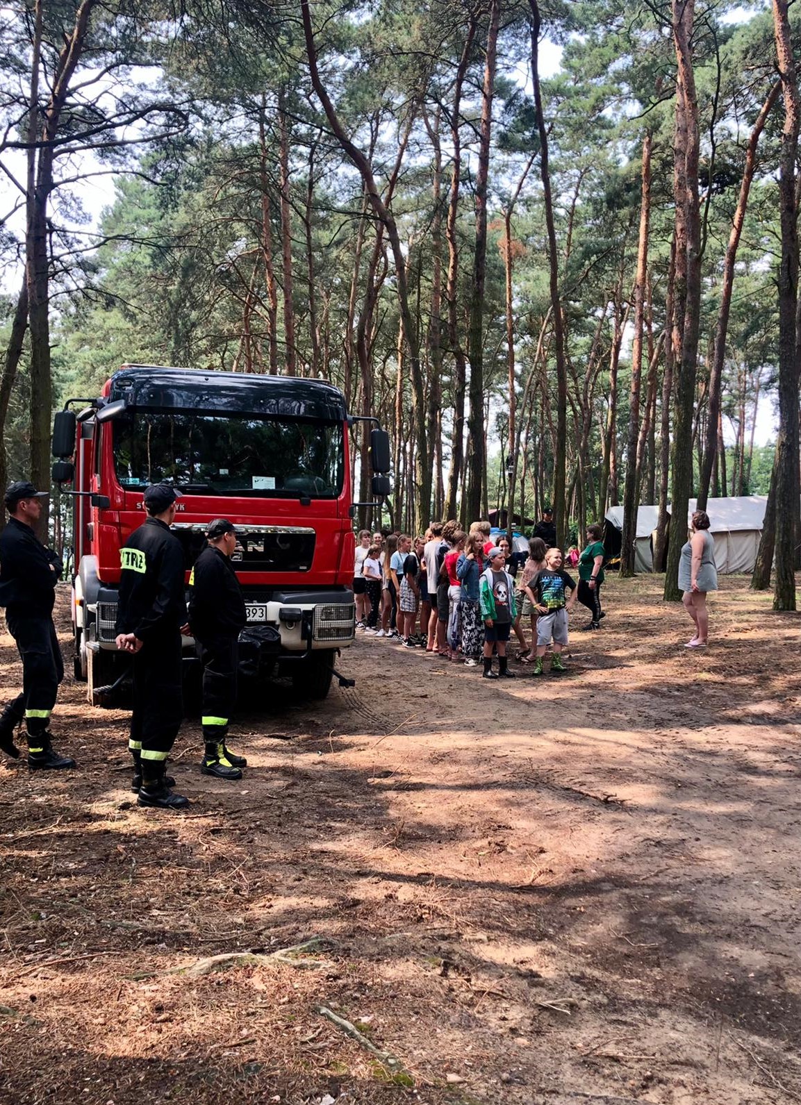 Strażacy uczestniczyli również w próbnym alarmie i ewakuacji obozowiczów. Sprawdzono także łączność ze Stanowiskiem Kierowania Komendanta Miejskiego PSP w Koninie.