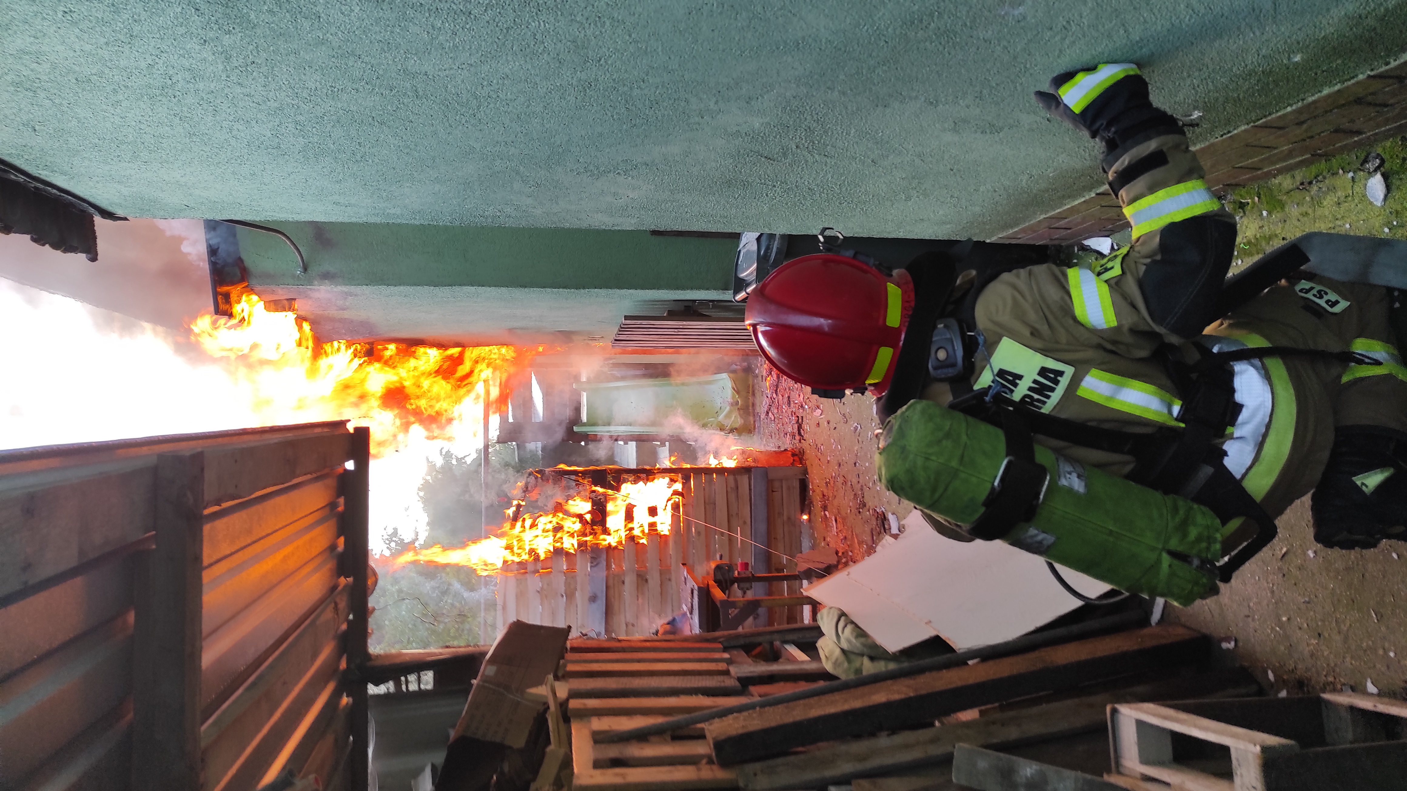 Po przybyciu na miejsce stwierdzono pożar przybudowanej do budynku mieszkalnego jednorodzinnego kotłowni, która objęta była całkowicie pożarem. Ponadto zadymieniu uległ budynek mieszkalny. Mieszkańcy opuścili dom przed przybyciem strażaków oraz nie wymagali udzielenia pomocy.