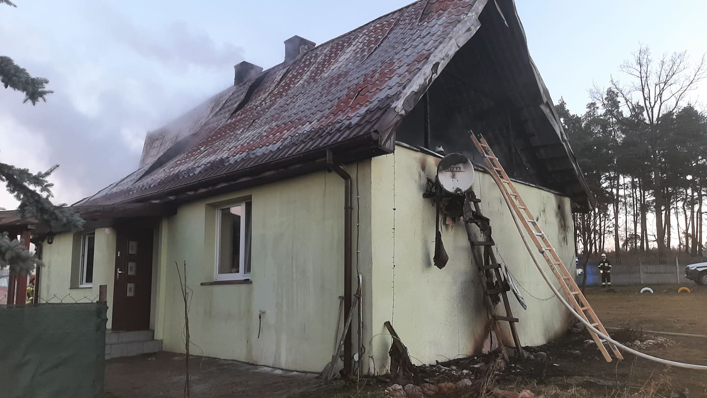 Po przybyciu na miejsce stwierdzono całkowicie objęte pożarem poddasze budynku mieszkalnego jednorodzinnego. Mieszkańcy opuścili dom przed przybyciem strażaków.