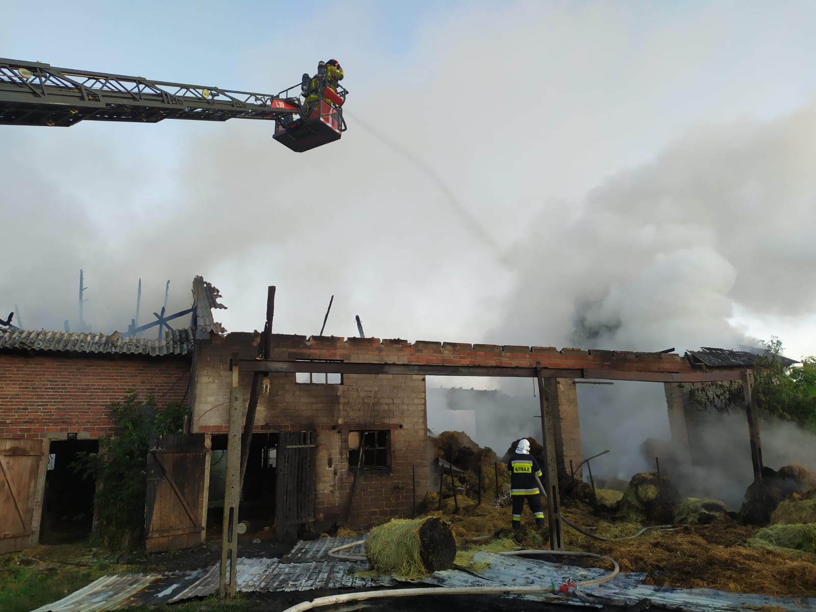 Ze względu na wymaganą dużą ilość wody do gaszenia pożaru zadysponowano dodatkowe samochody ratowniczo – gaśnicze. Po ugaszeniu pożaru przystąpiono do usunięcia z budynku materiałów palnych w postaci słomy i siana oraz dogaszeniu ich wodą na zewnątrz.